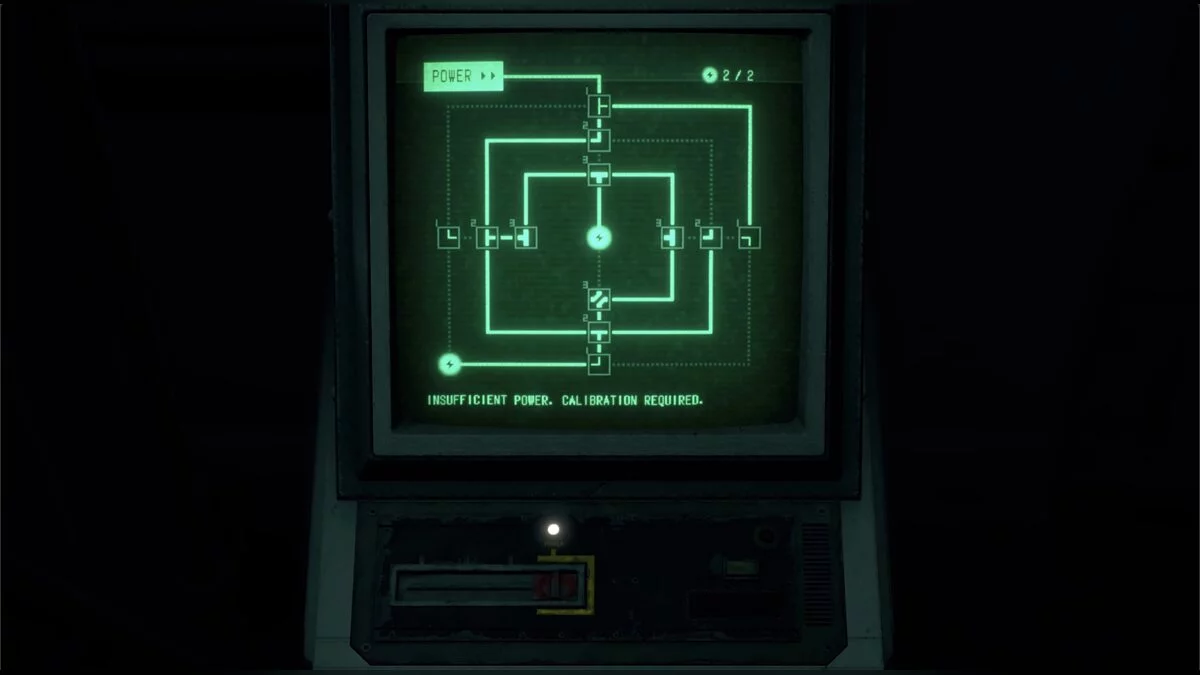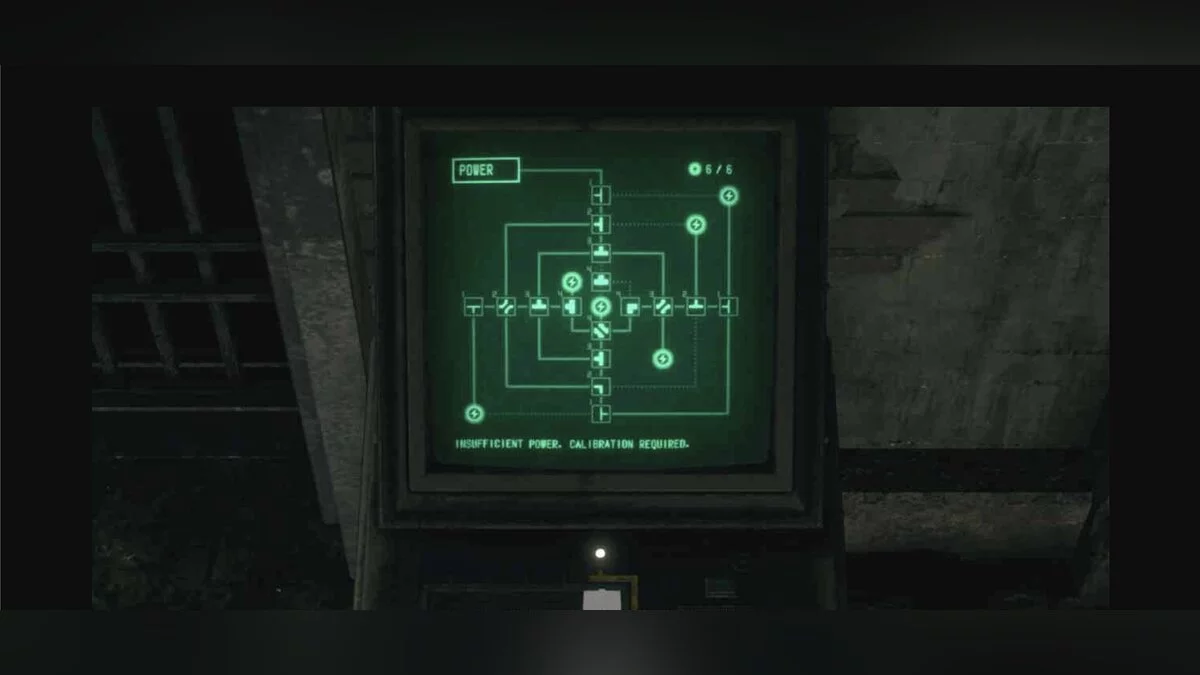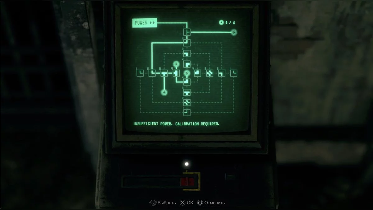 Прежде чем идти к компьютеру, обратите внимание на головоломку справа. Она такая же, как вы уже решали с точками электричества, но сложнее. Обязательно решите ее, чтобы получить новое оружие — пистолет пулемет.