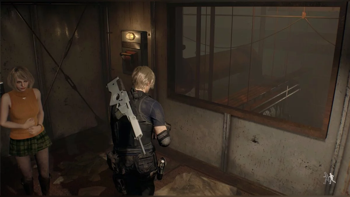 У вас пока нет этой просьбы торговца, но рекомендуем сразу убить 4 крыс, чтобы получить награду и не возвращаться. Всех животных можно найти в локации, где вы оказались. Двигайтесь по единственному коридору. Справа будет головоломка на компьютере, но пока нет электричества. В итоге вы упретесь в разведенный мост. Попросите Эшли повернуть и удерживать вентиль, чтобы перебраться на другую сторону.