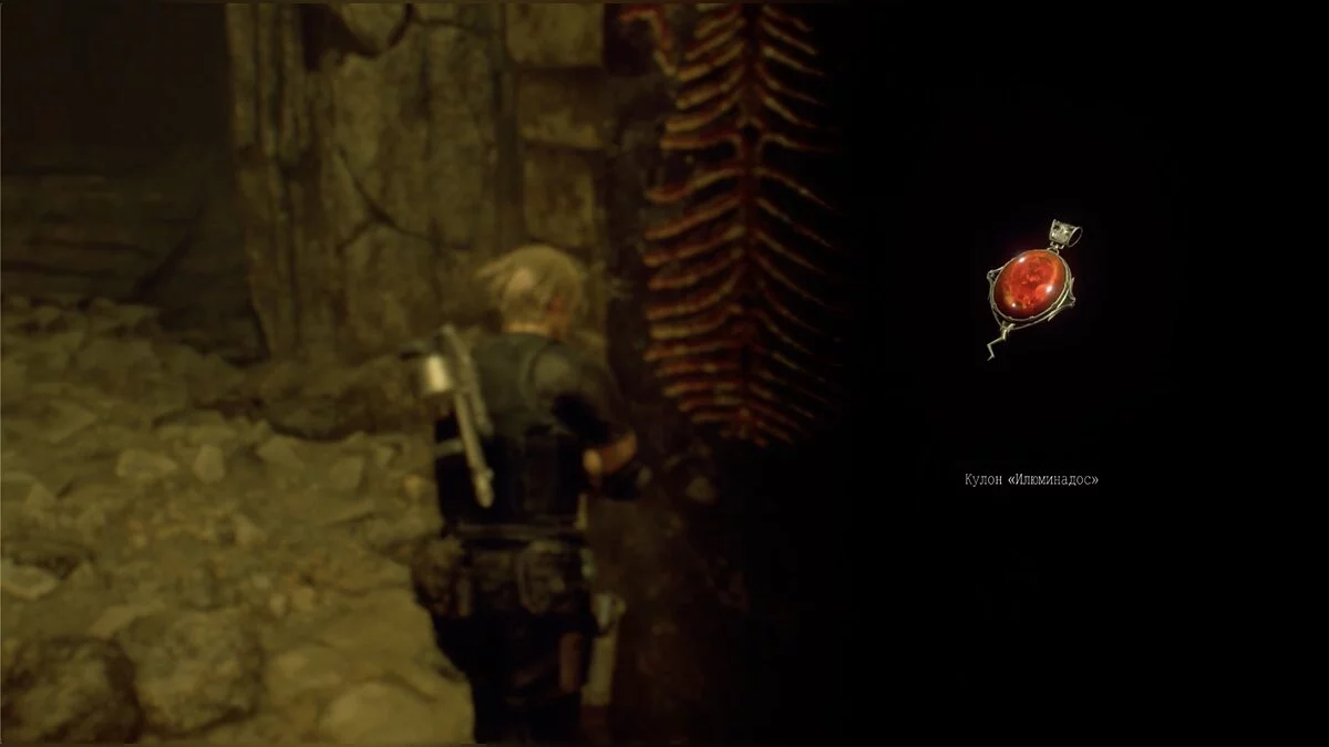 Вы окажетесь около алтаря, где лежала Эшли. Убейте пару жуков и осмотрите статую в центре — кулон «Иллюминадос». Возвращайтесь к развилке и держитесь правой стороны, чтобы забраться на уступ и пройти через дверь.