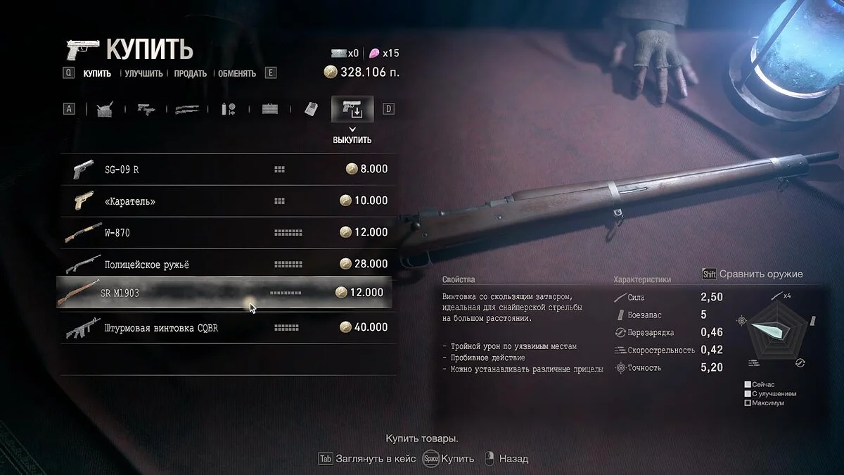 Лучшая винтовка в игре стоит всего 30 000 монет и появится у торговца в 7 главе.