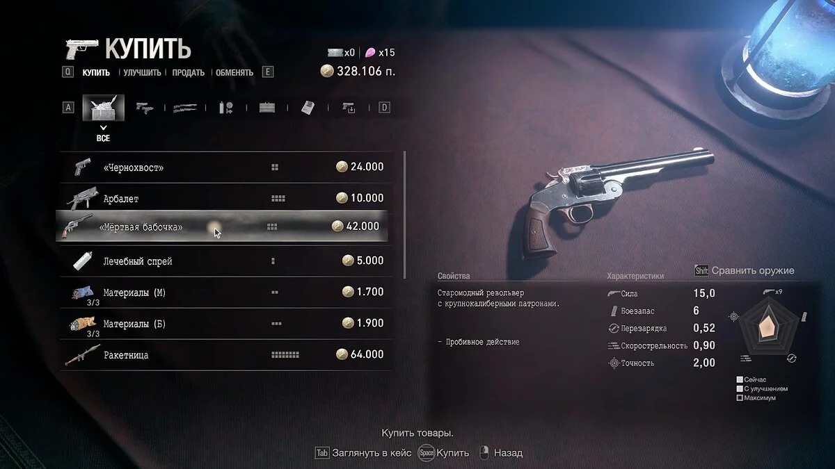 В 8 главе этот мощный револьвер можно обменять у торговца на 10 шпинелей.