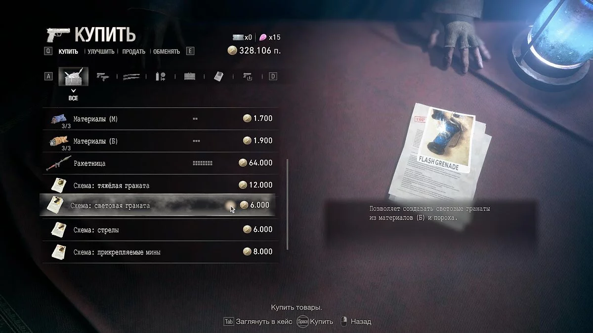 Не всё оружие можно найти, изучая локации. Часть оружия можно приобрести у торговца за песеты (игровая валюта). Купить такое снаряжение возможно в любой главе, но у каждого оружия есть свой «старт продаж».
