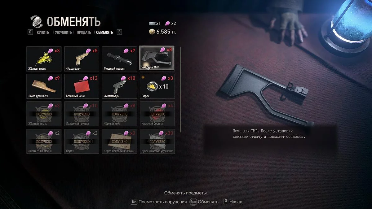 Всего в игре 7 дополнительных деталей для оружия. Собрав их все, вы выполните испытание «Внимание к деталям» и получите 500 ОР. Каждая деталь может быть объединена с некоторыми видами оружия. Вы также можете хранить обвесы в хранилище у пишущей машинки, если они вам не нужны.