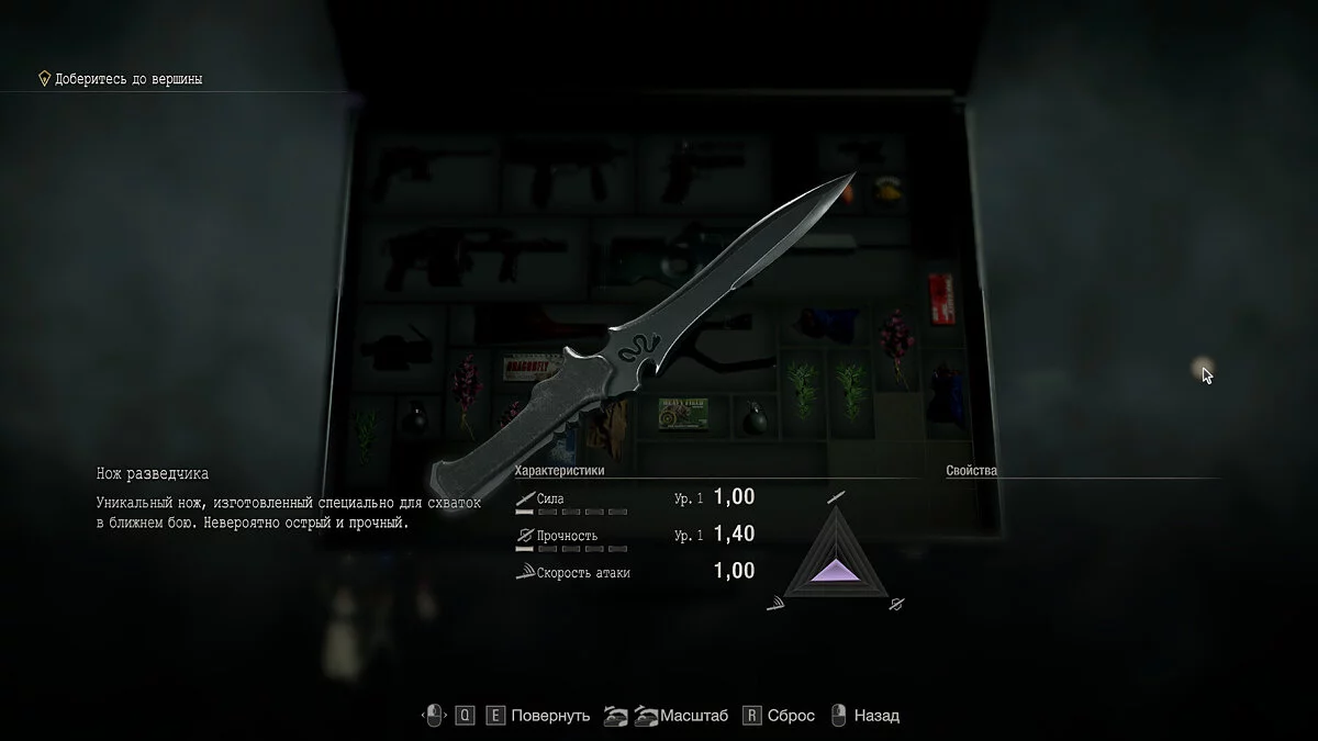 Ещё одно холодное оружие, которые вы получите при прохождении игры. Нож станет доступен и автоматически попадёт в инвентарь после победы над боссом в конце 14 главы.