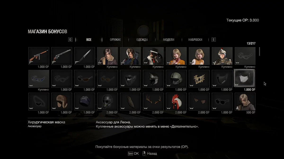 Медицинская маска и ушанка — оба аксессуара вы получите по завершении сюжета на обычной сложности. В игре нет вируса, передающегося воздушным путём, да и урон от холода вы не получите, но данные аксессуары очень идут Леону, слегка меняя восприятие игры.