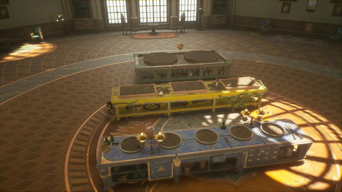 Чем меньше размер горшка, тем их больше помещается на одном стенде. В выручай-комнате можно создать стенд для пяти маленьких горшков, трёх средних или двух больших. Всего вы сможете разместить 7 столов с нужным количеством горшков, так как они суммируются.