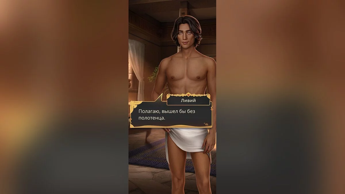 Эва зашла в дом Исмана, вспоминая свой странный сон. Вдруг из комнаты вышел Ливий, слегка прикрытый полотенцем.