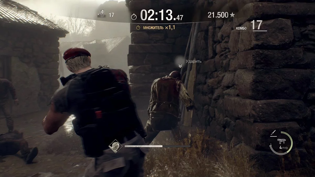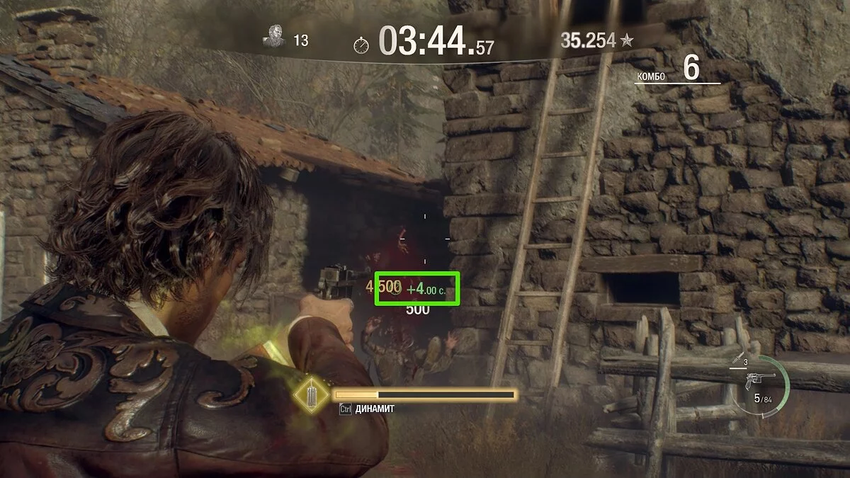 Теперь перепрыгивайте через ограду и бегите в амбар слева. Не стреляйте по врагам, иначе комбо сбросится, а вы не сможете получить максимальное количество очков!