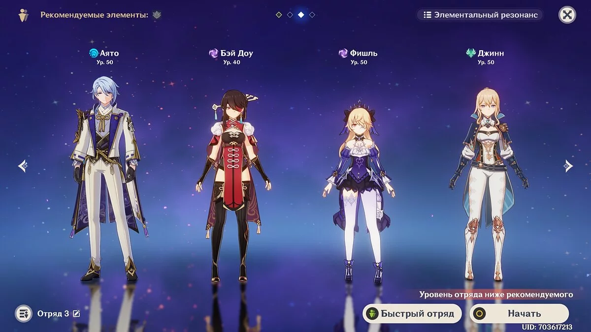 В первую очередь отталкивайтесь от героев, которые есть в вашем распоряжении. Обязательно возьмите в отряд одного Гидро персонажа: