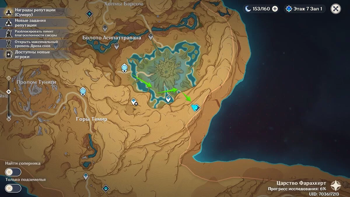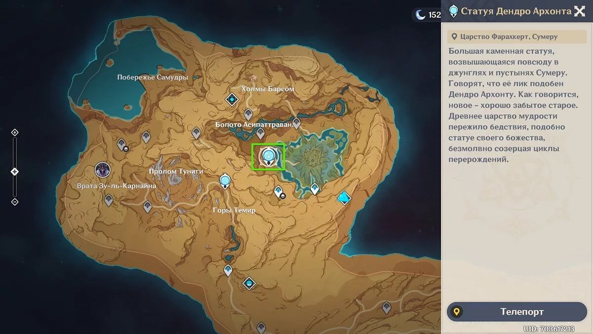 Сперва нужно убедиться, что вы достигли 40 ранга приключений героя, поскольку вход в подземелье будет закрыт для низкоуровневых искателей приключений. Также мы рекомендуем добраться до статуи Дендро Архонта в области Царство Фарахкерт и активировать её. Так вы получите доступ к восточной части карты и сможете отследить местоположение данжа.