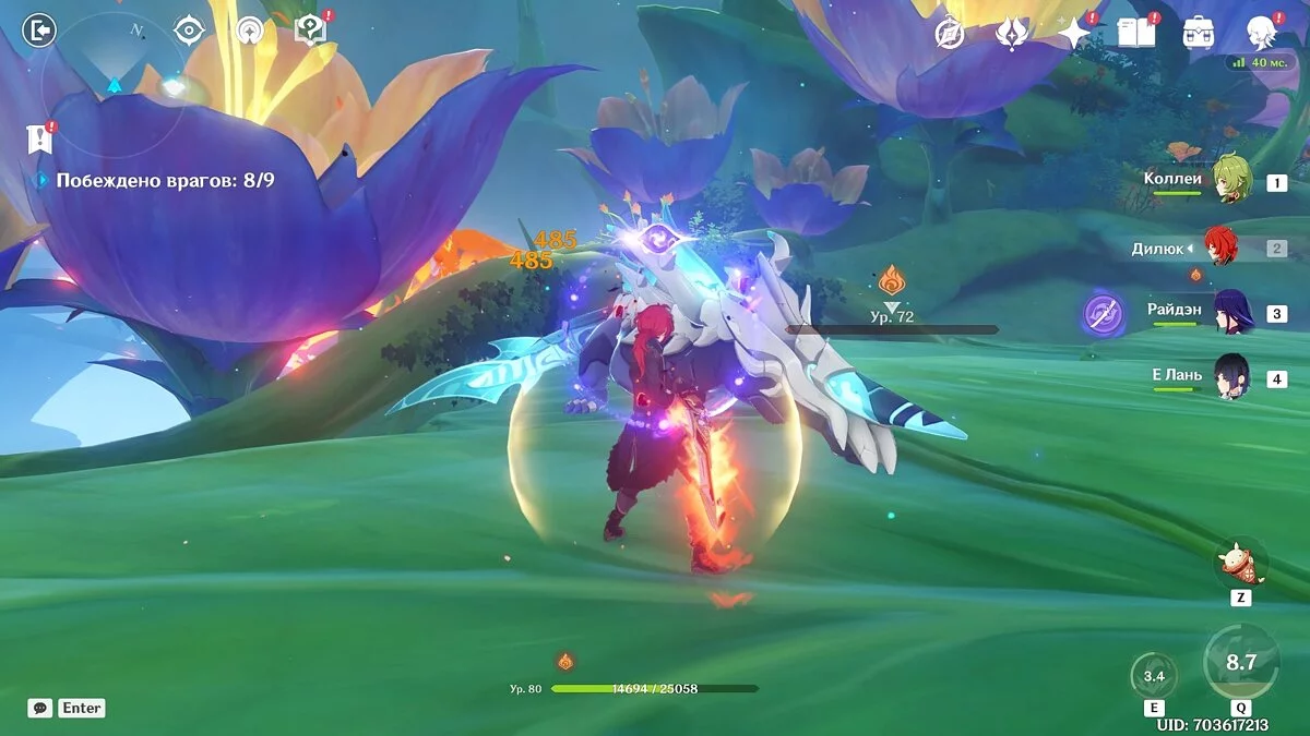 Если же вы предпочитаете использовать Е Лань, то лучше всего взять к ней в напарники Райдэн. Благодаря их взрывам стихий вы можете наносить врагам огромный урон за небольшой промежуток времени. Сперва активируйте взрыв стихий Е Лань, после чего переключитесь на Райдэн и также используйте ультимативный навык.
