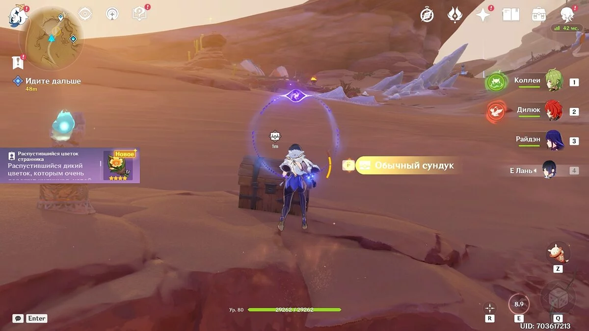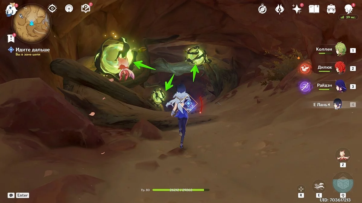Доберитесь до маркера и войдите в пещеру. Здесь же вы увидите новое обучение (можно посмотреть в разделе «Исследование», нажав на клавишу «G»). Просто используйте Соруш, чтобы собрать энергетические шары и получить обычный сундук.