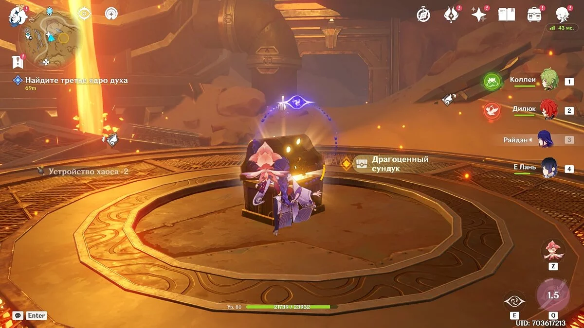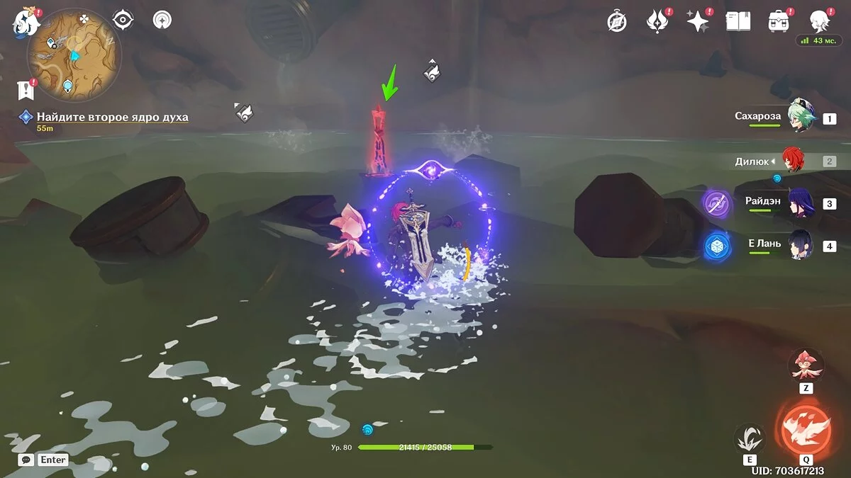 Здесь же нажмите на рычаг, чтобы открыть проход в полу. Слева вы увидите затопленную комнату, где и находится второе ядро духа. Чтобы осушить помещение, достаточно активировать рычаг. Рядом с ядром духа будет лежать удивительный сундук.