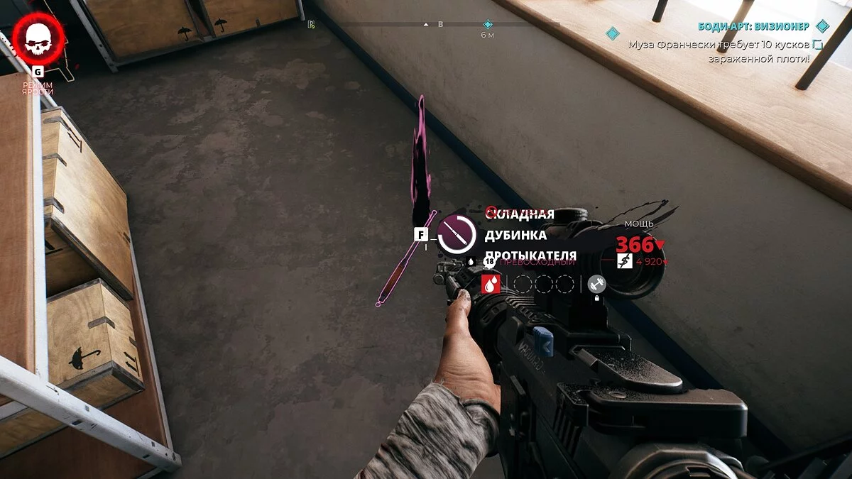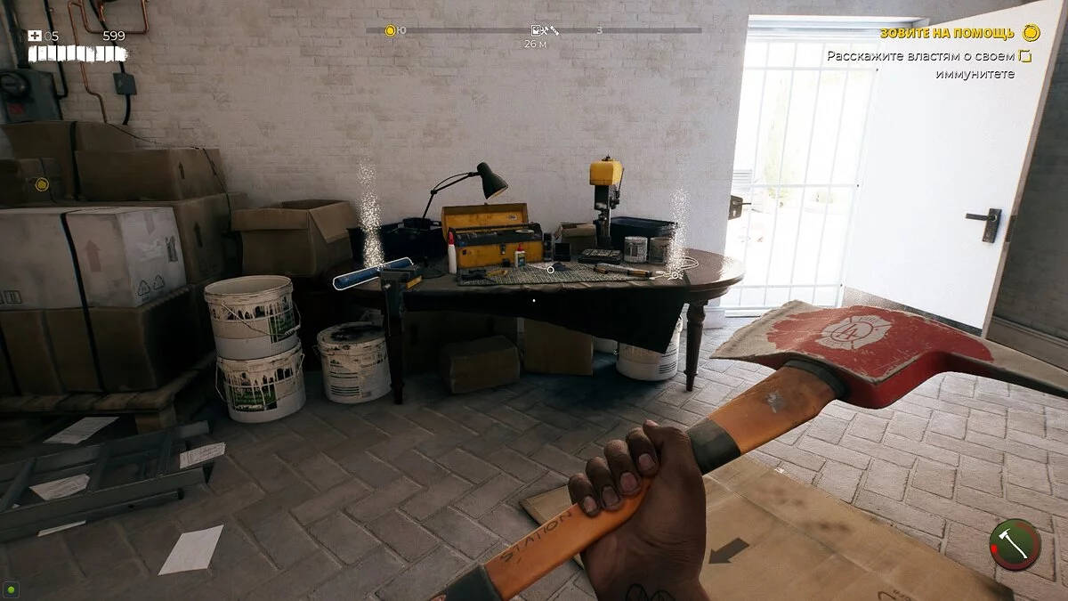 Внутри вы найдёте припасы, грабли, канистры с топливом и водой, а также умение для оружия «Прочность».