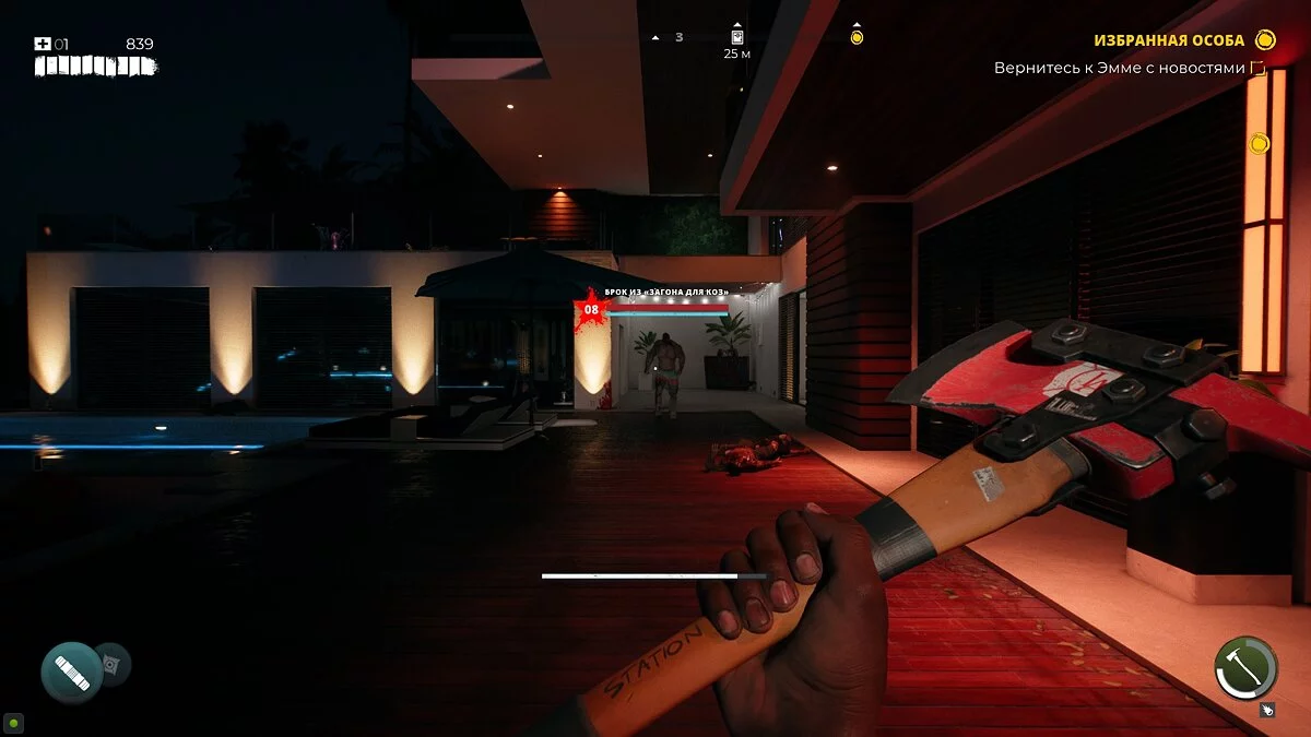 Для этого достаточно убить заражённых во внутреннем дворе и запитать дом при помощи канистры с водой. Когда Кертис пригласит вас войти через парадную дверь, также избавьтесь от группы мертвяков. Спустившись, хозяин дома отдаст вам ключи от всех комнат.
