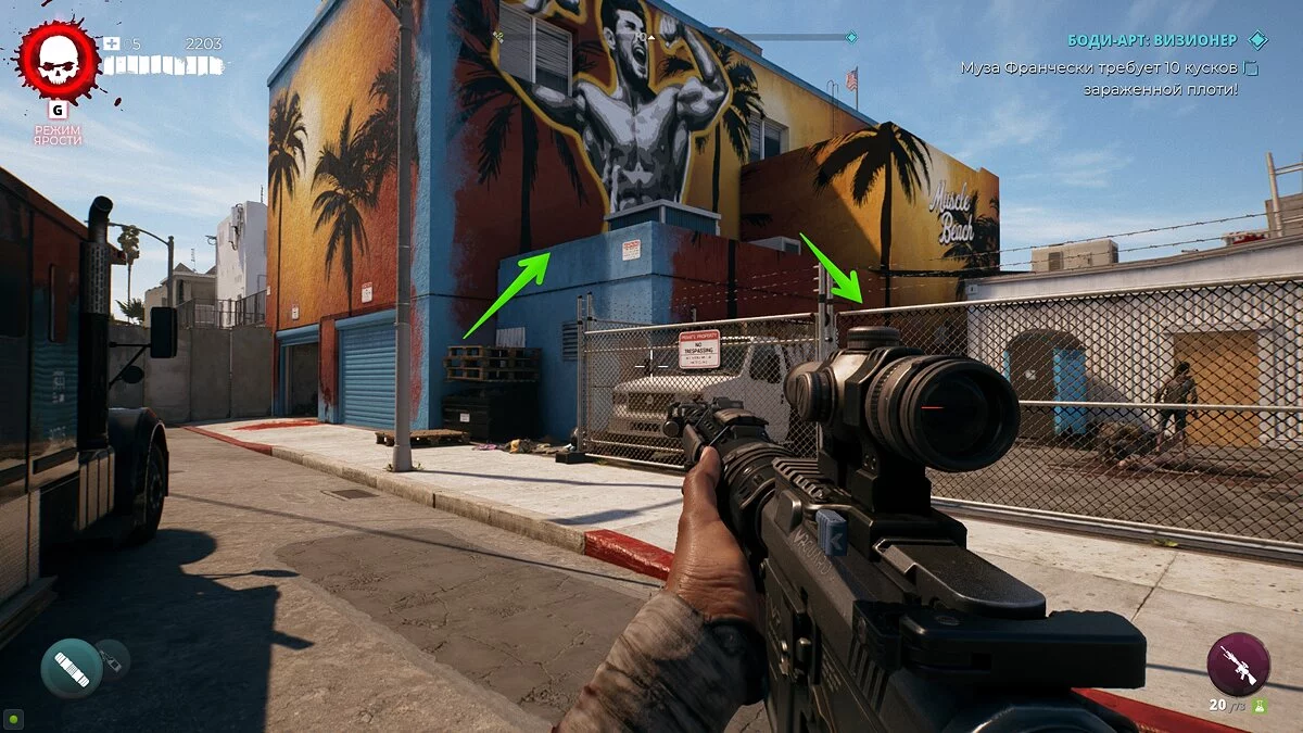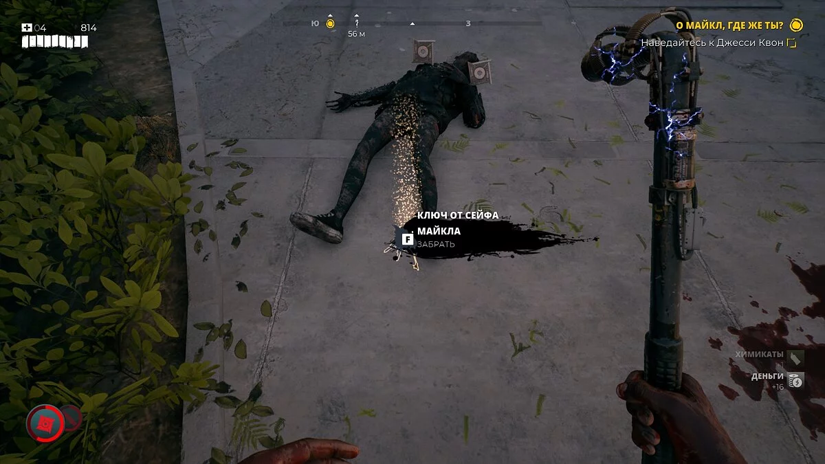 Как только вы встретите своего первого крикуна, вернитесь к особняку и осмотрите внутренний двор. В дальней правой части здания есть несколько биотуалетов. Откройте один из них, чтобы появились монстры. Убейте их и осмотрите тела. Рядом с одним из трупов будет лежать ключ от сейфа.