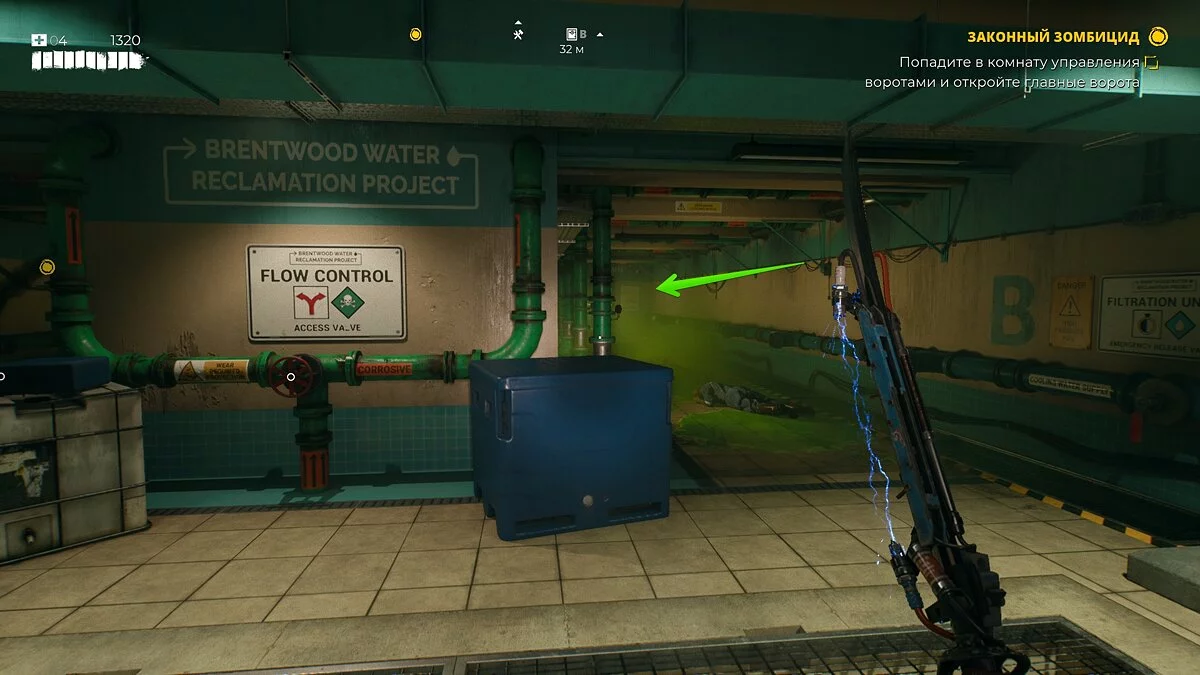 Чтобы получить его, придётся проникнуть в подвалы и решить несложную головоломку. Сперва спуститесь в канал с водой и подберите вентиль. С его помощью перекройте подачу кислоты.