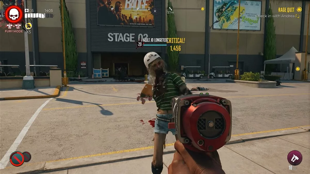 Отправляйтесь ко входу в третий павильон и подойдите к главной двери. Перед вами появится большая толпа мертвяков, среди которых будет Келли Джо. Убейте её и заберите ключ.