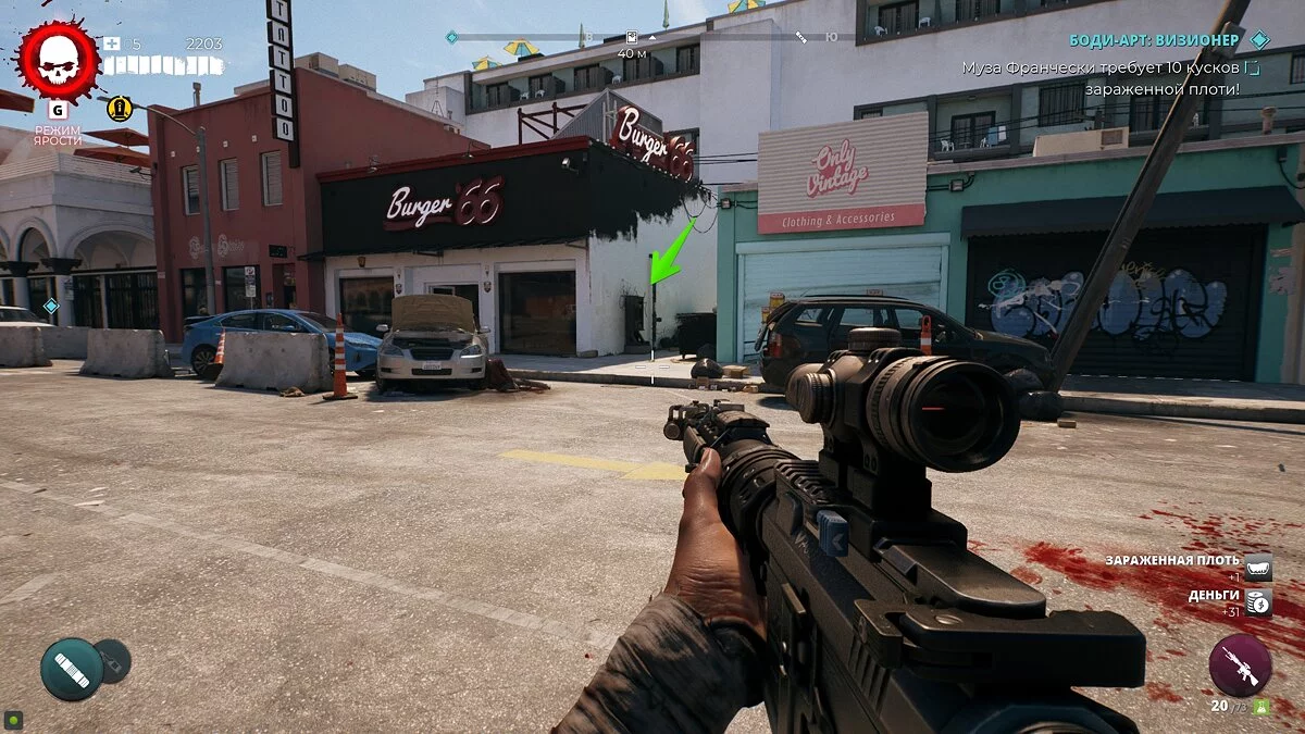 Стоит отметить, что рядом с ним также будет находиться босс по кличке Крушитель. Убивать его необязательно, но расправиться над охранником в его присутствии будет довольно сложно. В сейфе находится случайное редкое оружие.