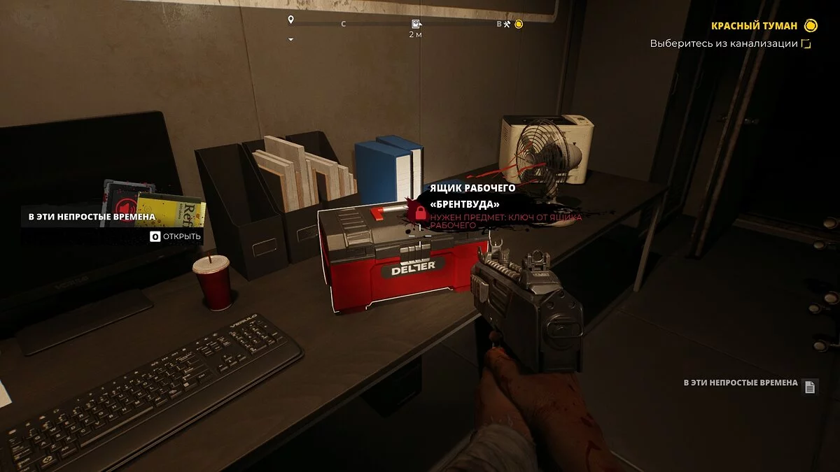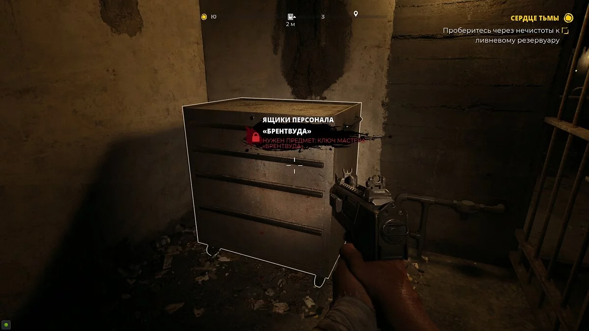 Когда вы пройдёте через «сердце» канализации, с героем по рации свяжется доктор. Не спешите следовать за маркером. Вместо этого войдите в соседнее помещение. Здесь на столе стоит ящик.