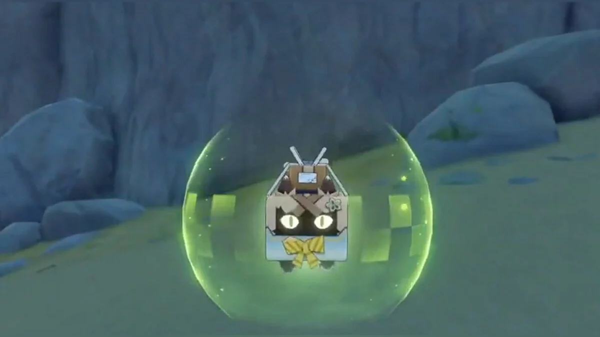 Летящий удар лапой (элементальный навык, долгое нажатие). Девушка активирует для самой себя щит и сворачивается в небольшой ящик. Если после этого она сталкивается с врагами, то они получают Дендро-урон. Пока действует элементальный навык, скорость ходьбы и прыжков героини повышена. Если вы используете спринт и побежите, эффект прервётся. В этом случае, а также когда время действия элементального навыка закончится, Кирара совершит Дендро-удар по площади.
