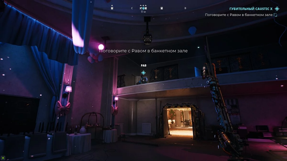 Вернитесь в отель и бегите в банкетный зал, где проходило сражение с боссом. Побеседуйте с Равом, который ждёт на балконе.