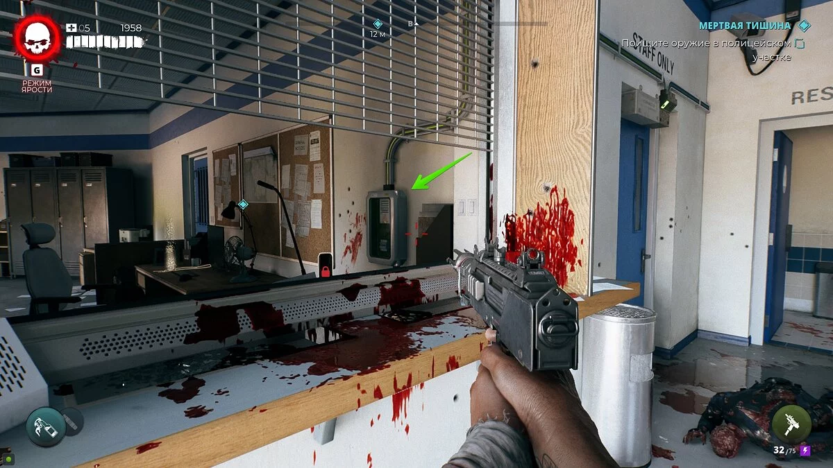 Разберитесь с ходячими и побеседуйте с выжившим спасателем по имени Берт. Он попросит осмотреть ещё два места: полицейский участок и универмаг. Следуйте по маркеру и также зачистите две эти зоны.