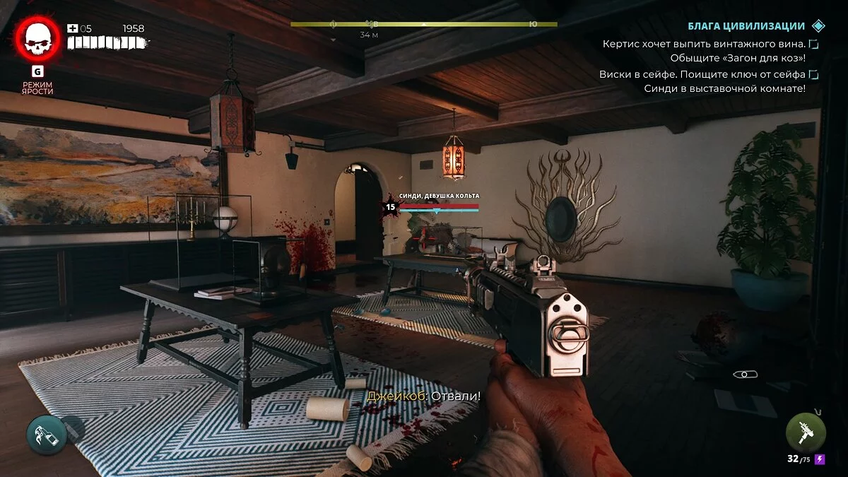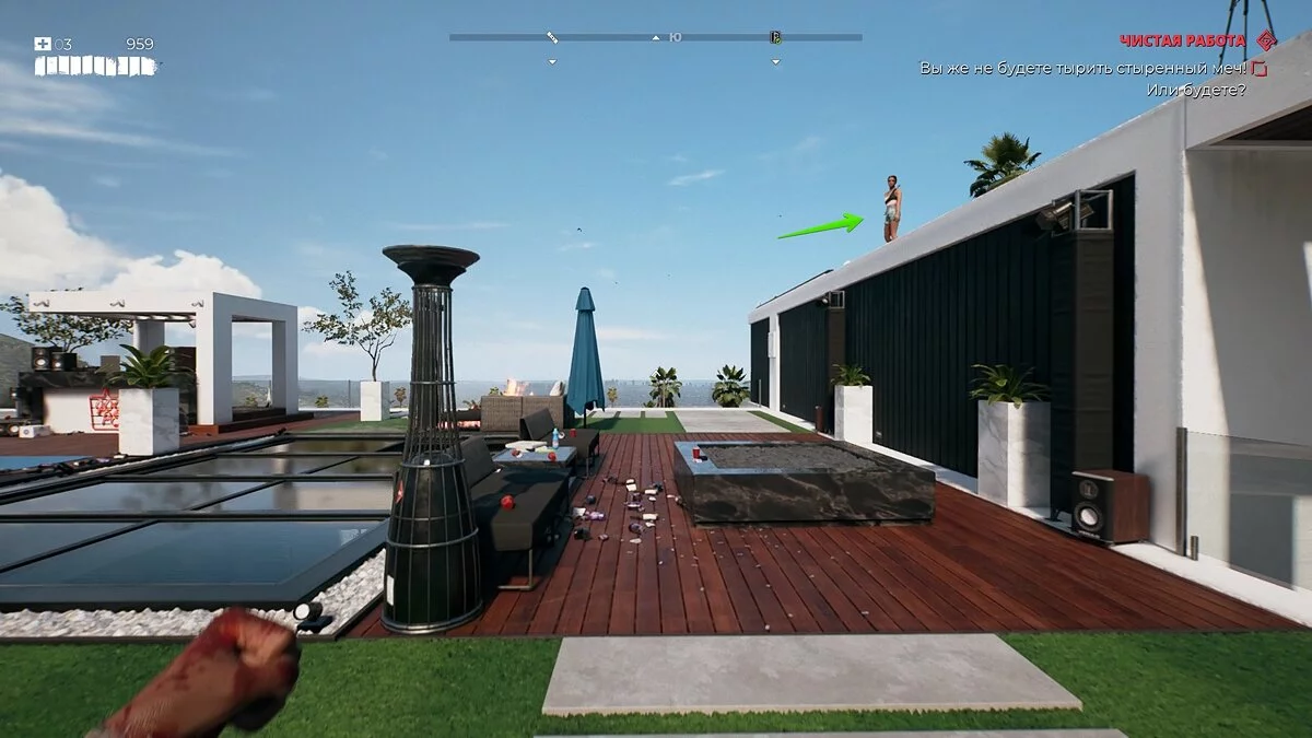 Вино находится в винном погребе на нижнем этаже пентхауса. Здесь же героя будет ждать крикунья с большим количеством других мертвяков. Избавьтесь от неё и выключите сигнализацию, иначе рискуете ввязаться в затяжное сражение.