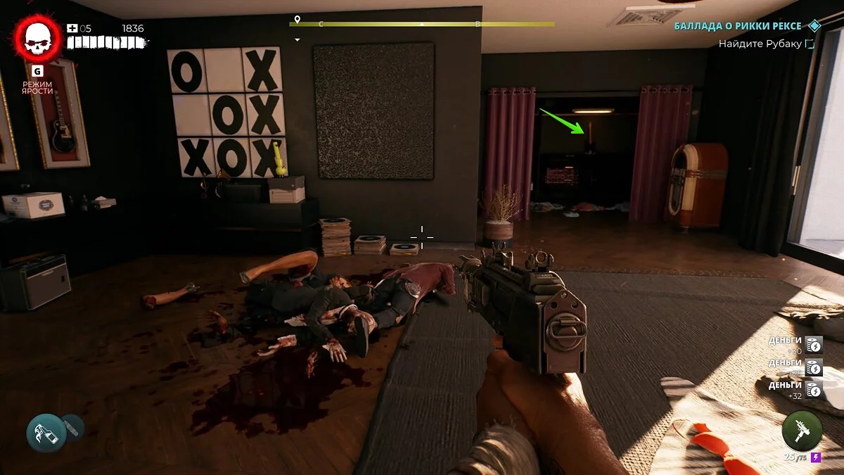 Чтобы завершить задание, придётся выполнить несколько поручений Аманды. Включите музыку на пульте и приготовьтесь отражать атаки зомби.