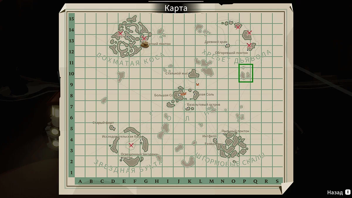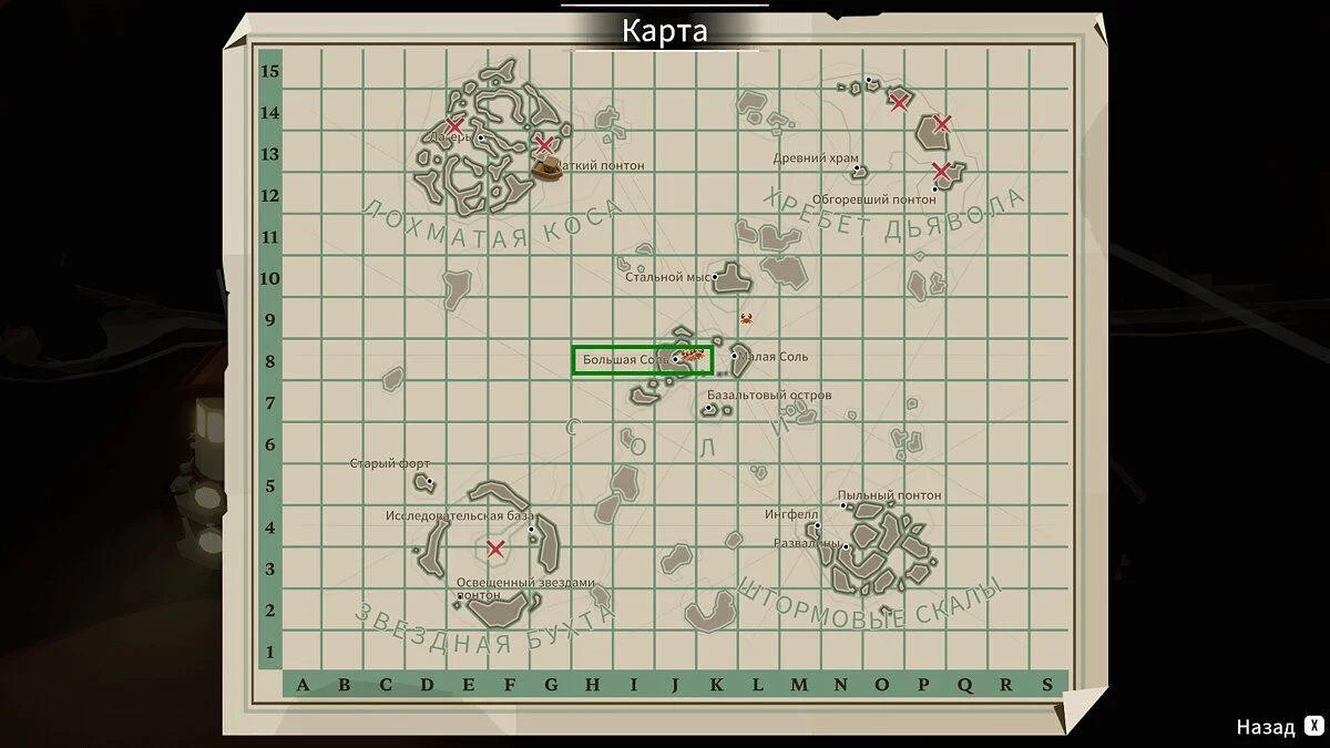 Остров, на котором он находится, расположен в квадрате P10. Следует причалить к пристани и побеседовать со старым мэром, чтобы понять, что происходит. Затем возвращайтесь в Большую Соль (Greater Marrow). Чтобы сэкономить время, можете телепортироваться на Базальтовый остров (Blackstone Isle).