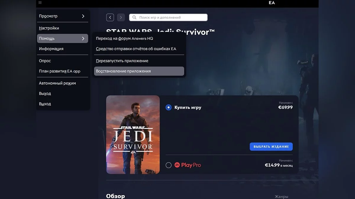 Запустите игру Star Wars Jedi: Survivor и проверьте, появляется ли ошибка. Если данный способ вам не помог, то перейдите к следующему пункту.