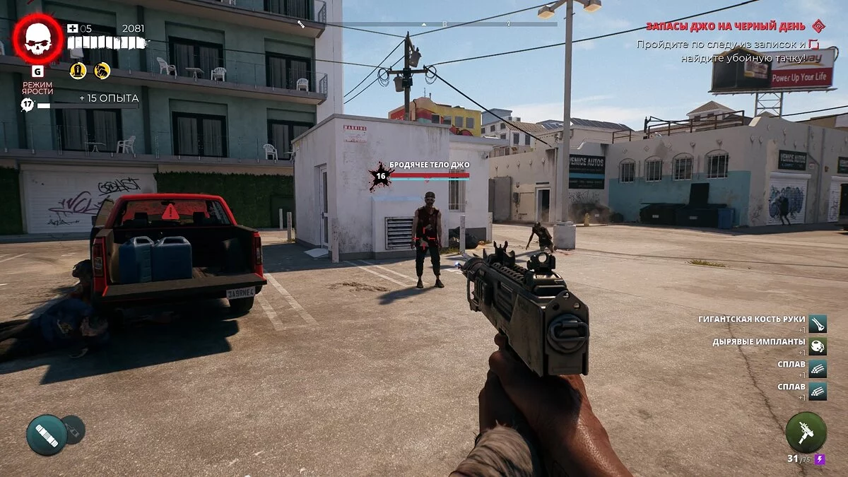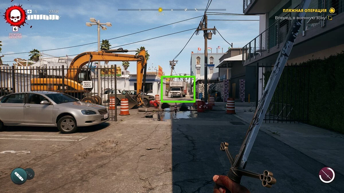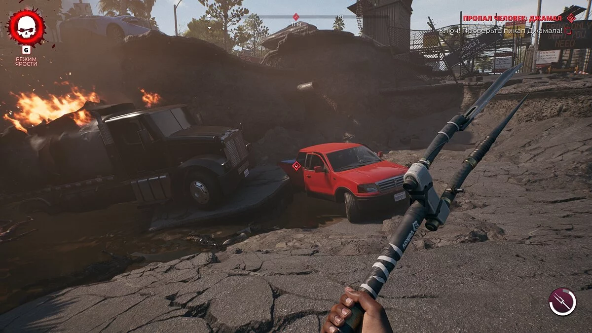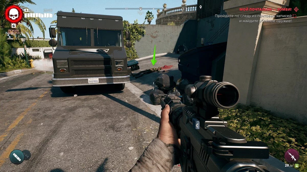 Теперь просто следуйте за маркером к красному пикапу и убейте всех зомби. Один из ходячих выронит ключ от ящика Джамала. Возьмите его и откройте контейнер в багажнике авто.