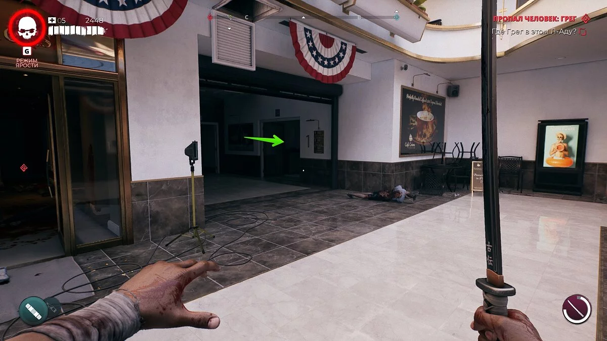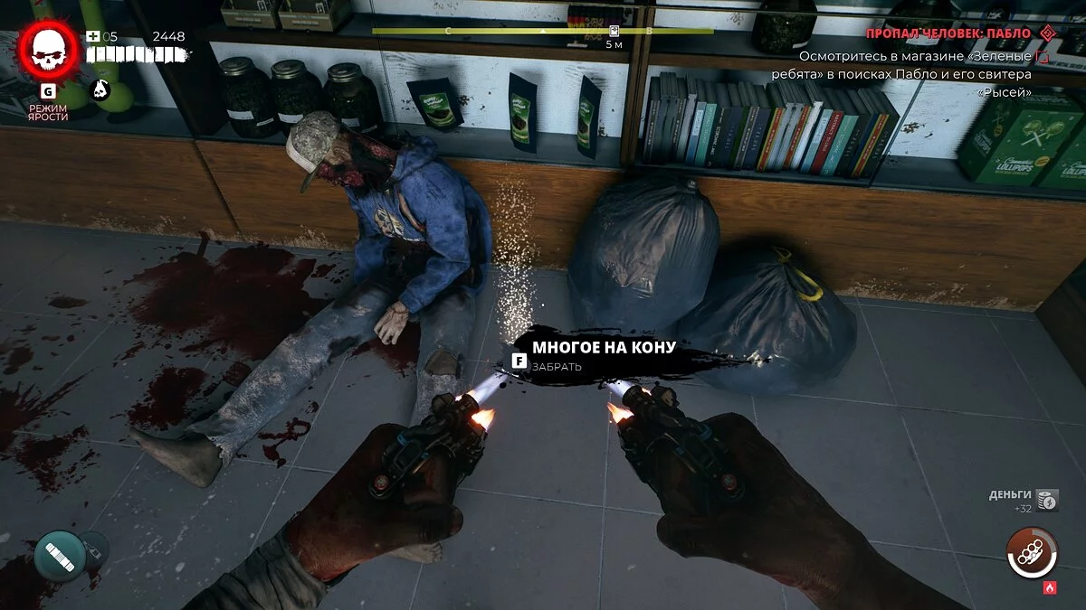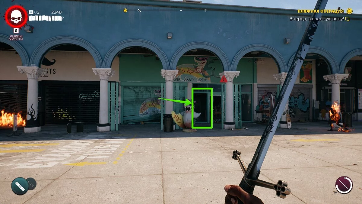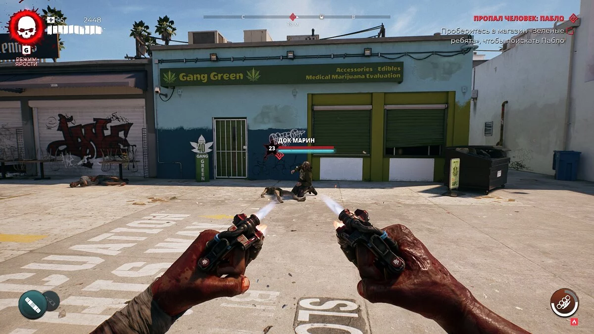 Бегите на север локации и доберитесь до магазина Gang Green. Перед входом появится зомби по имени Док Марин. Убейте его и заберите ключ.
