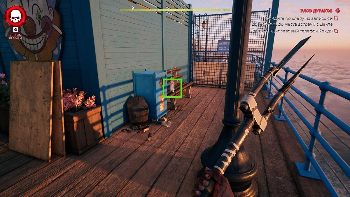 Следуйте на пирс к колесу обозрения. Обойдите его по правой стороне и найдите телефон на скамье у тупика.