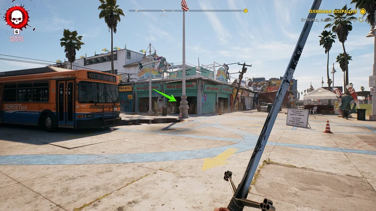 Отправляйтесь на Венис-Бич и осмотрите спасательную вышку №17. Она находится в южной части карты. На столе появится записка — возьмите её. Теперь бегите к соседней спасательной вышке, где вы могли встретить парня при прохождении обязательного дополнительного квеста.