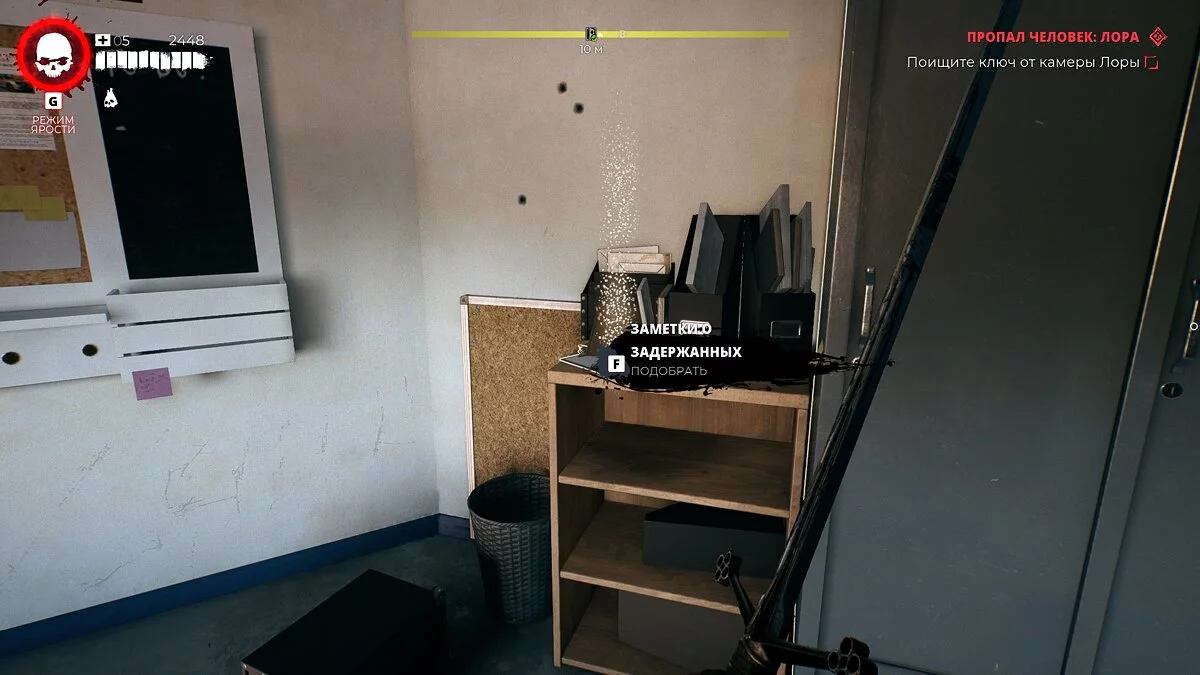 В камере будет два заражённых — разберитесь с ними и подберите последнюю заметку. Из Лоры выпадет редкое оружие.