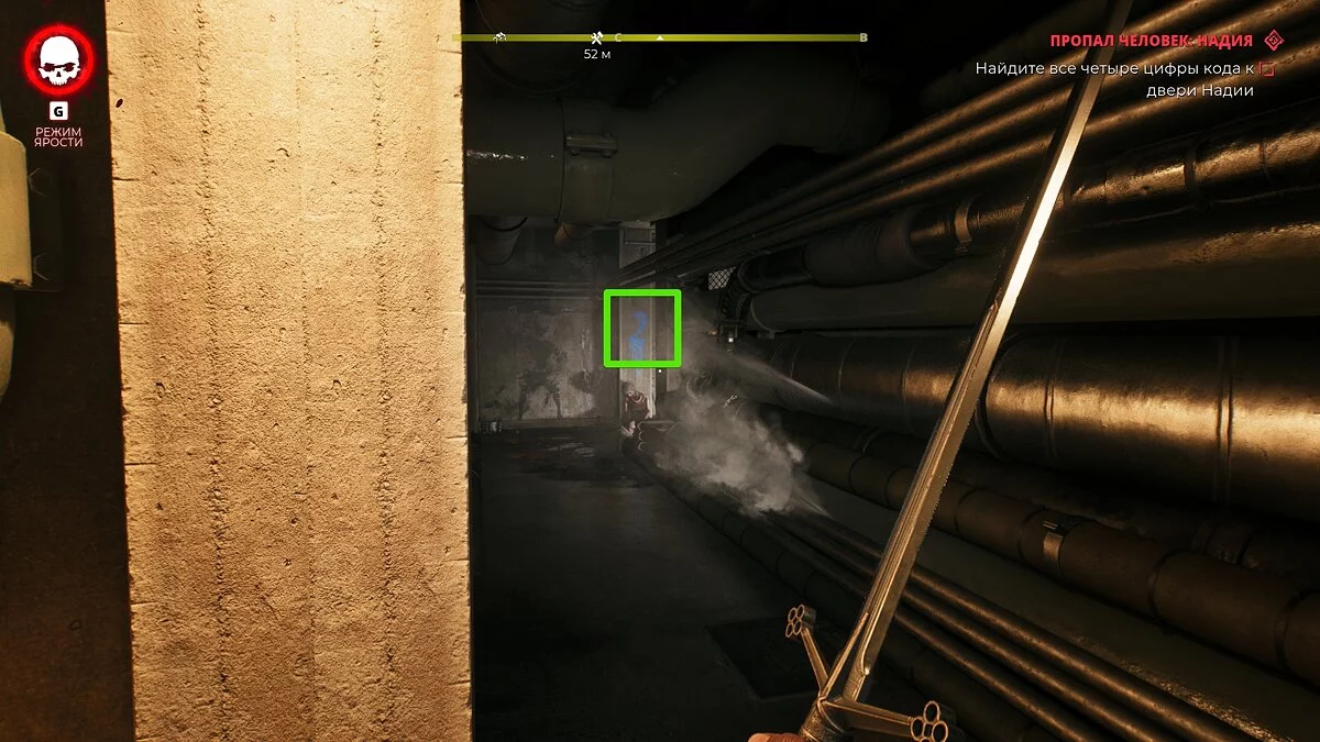 Переместитесь в метро и следуйте за маркером. У двери с консолью найдите записку. После этого задание обновится. Нужно исследовать отмеченную область на карте и отыскать четыре цифры. Достаточно взаимодействовать с ними, чтобы герой запомнил комбинацию.
