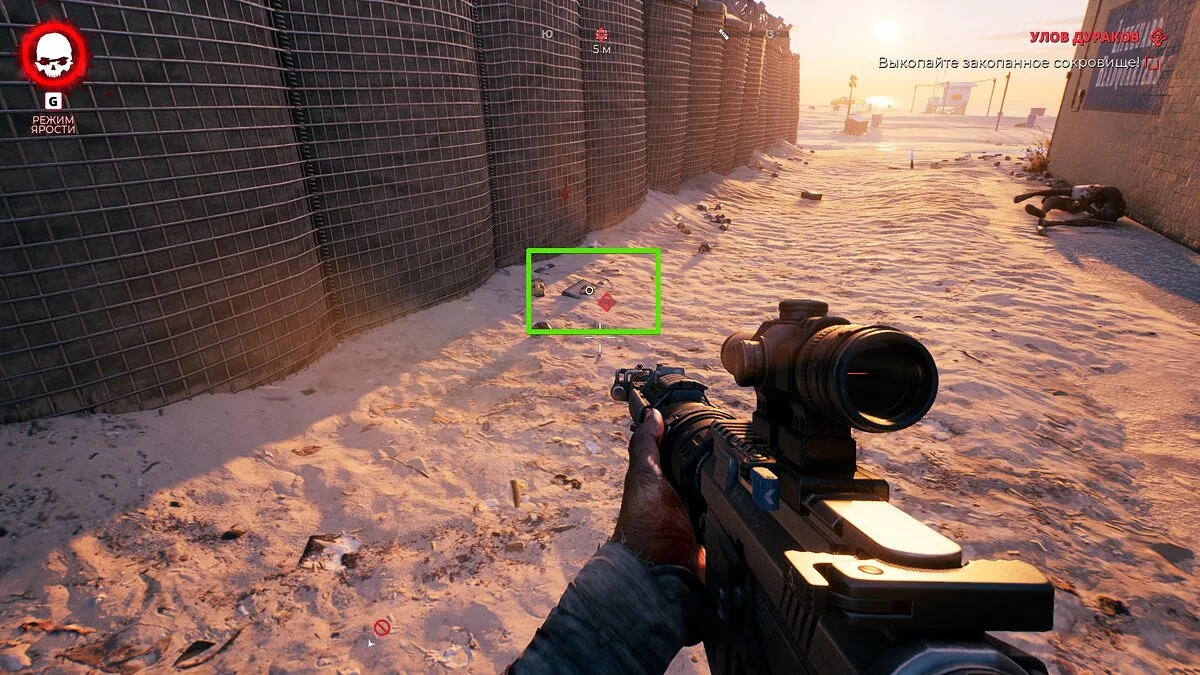 Бегите к смотровой вышке и обойдите её сзади. Здесь появится маркер, а также толпа мертвяков. Убейте их и осмотрите сейф.