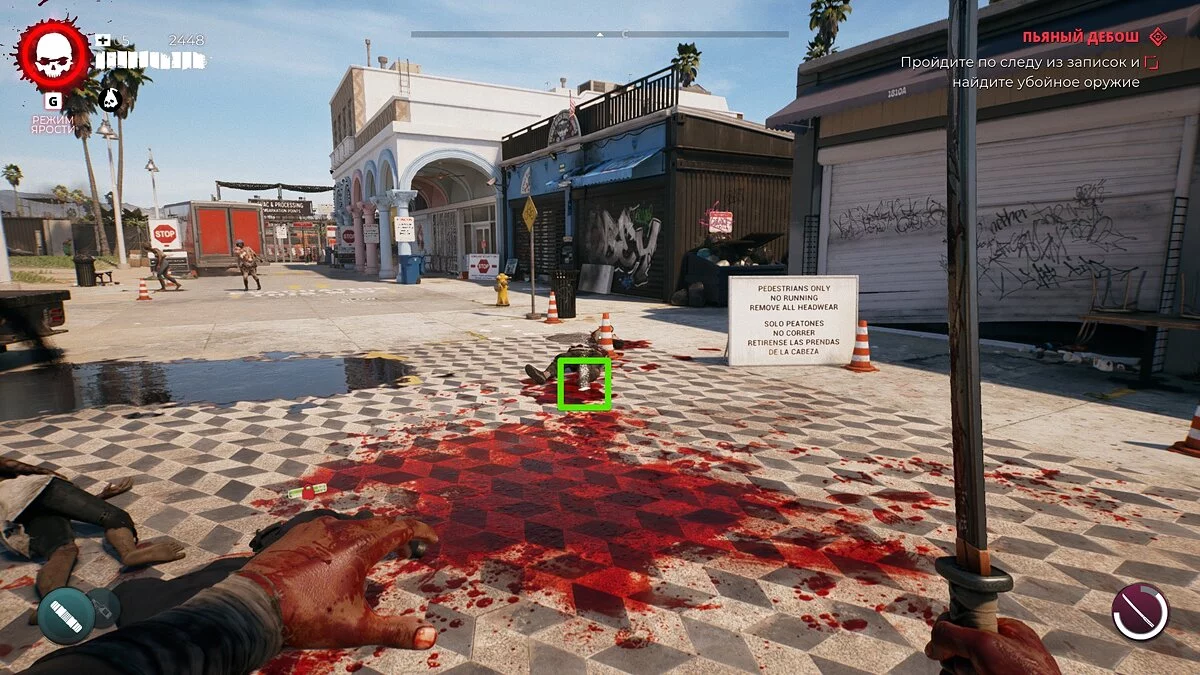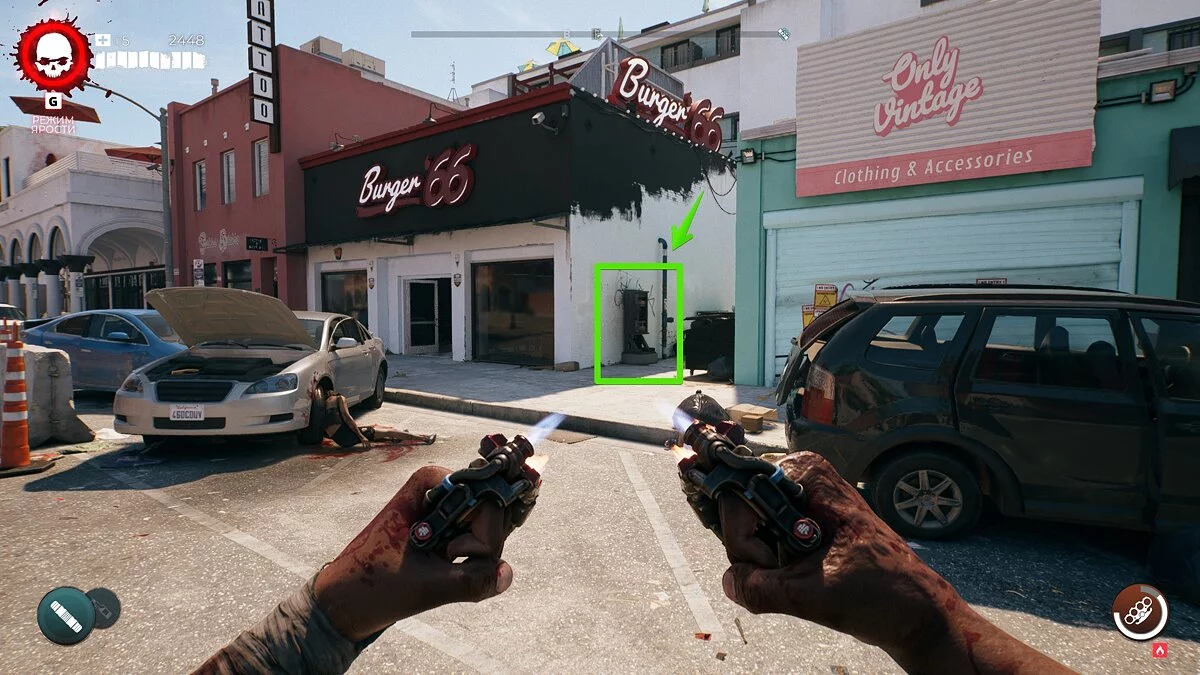 Покиньте тату-салон и следуйте на север. У одного из магазинов будет стоять зомби. Если его нет — просто подождите, пока он появится.