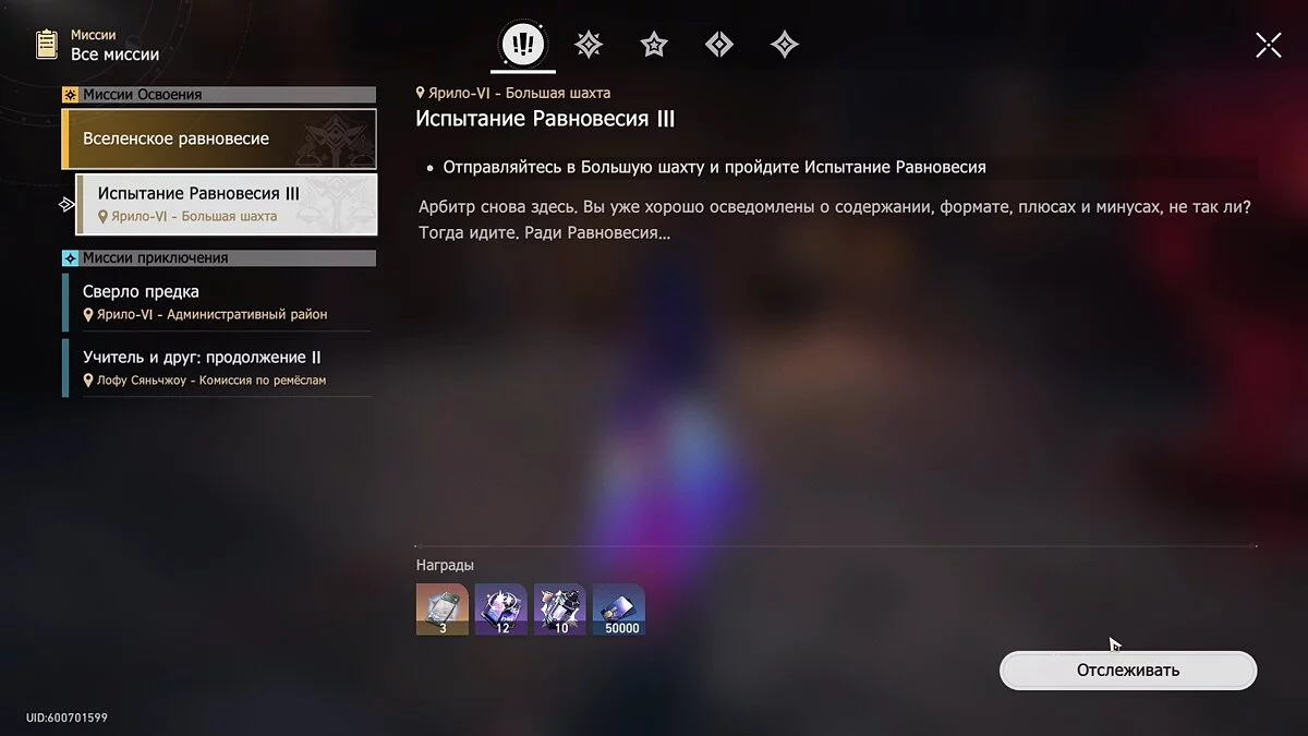 Следующее испытание станет доступно по достижении 40 уровня Освоения. Как только это произойдёт, в журнале задач появится основной квест «Испытание Равновесия III», а на карте вы сможете найти соответствующий значок. Он находится в локации Большая шахта на Ярило-6.