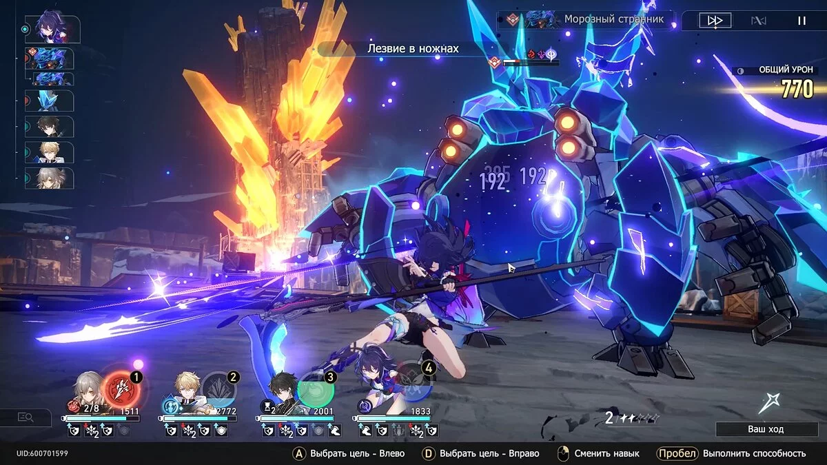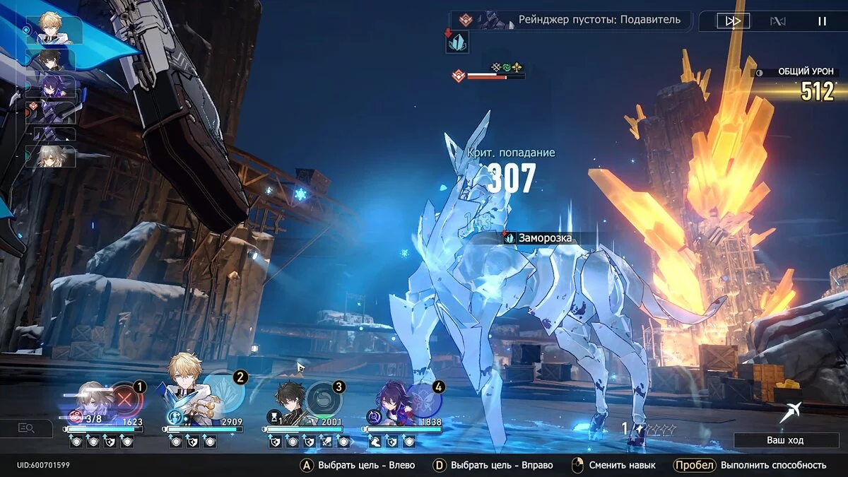 Как только у босса будет мало здоровья, сосредоточьтесь на восстановлении сверхспособностей героев. Это поможет быстро расправиться с ним. Если в вашем отряде есть Гепард, Яньцин или другой герой с Ледяным уроном, используйте их навыки по мере возможности для заморозки оппонента.