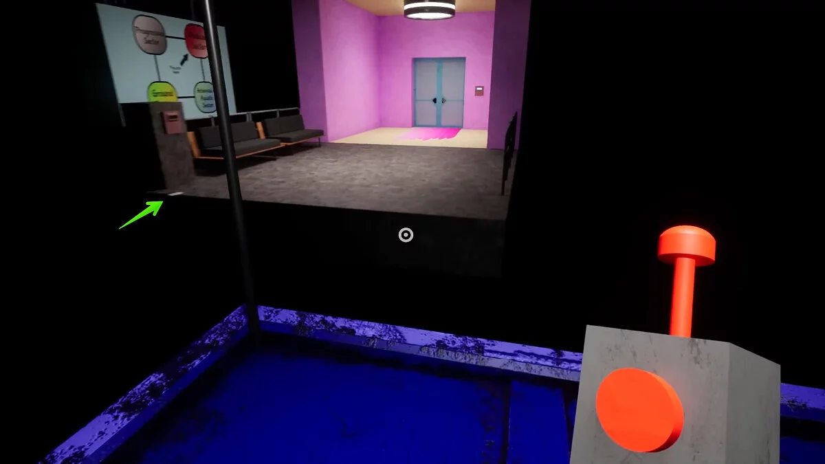 В соседнем помещении также откроется проход, но заходить туда не нужно. Вернитесь к лифту и следуйте в медицинский сектор (изображён красным на карте). Бегите вперёд и отыщите открытую дверь. Войдите, чтобы включился свет. Можете взаимодействовать с монстром на кушетке — в этот момент дверь закроется.