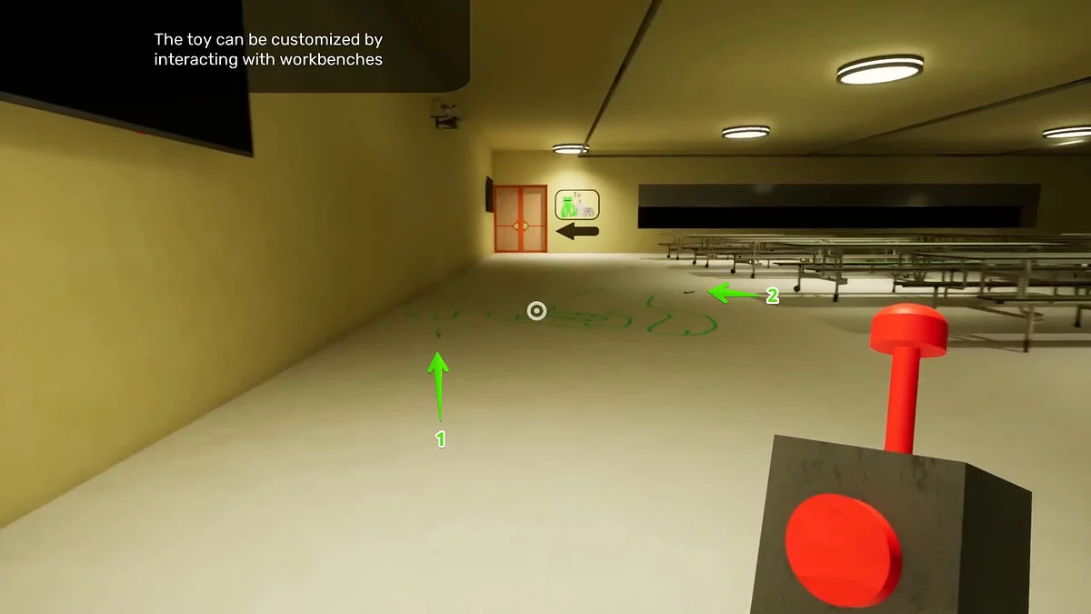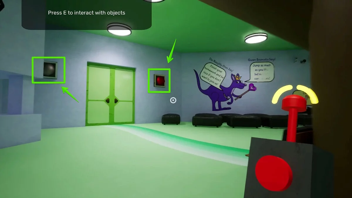 На стенах начнут светиться кнопки, в которые вы можете стрелять способностью монстра. Обратите внимание, что вам придётся повторить действия три раза. Помимо четырёх кнопок на стенах, вы найдёте ещё два подобных устройства на нижнем уровне под лестницей.