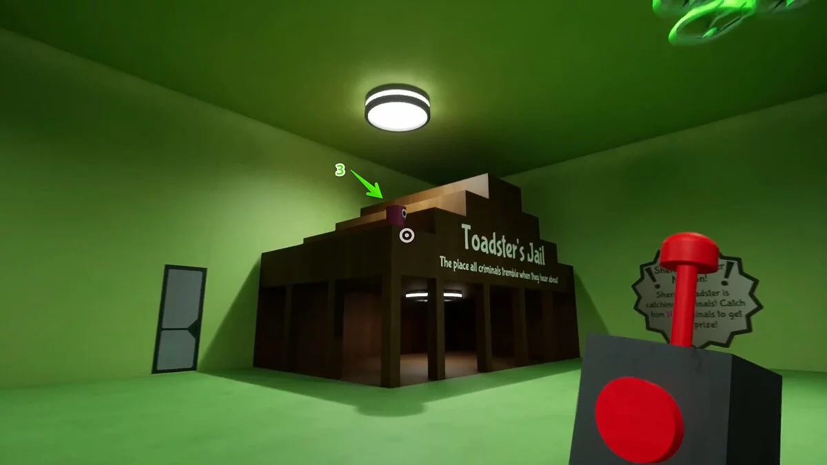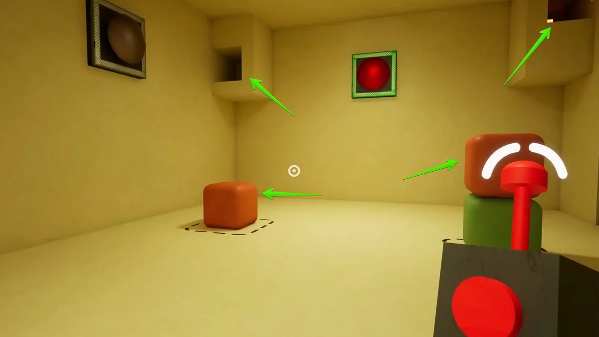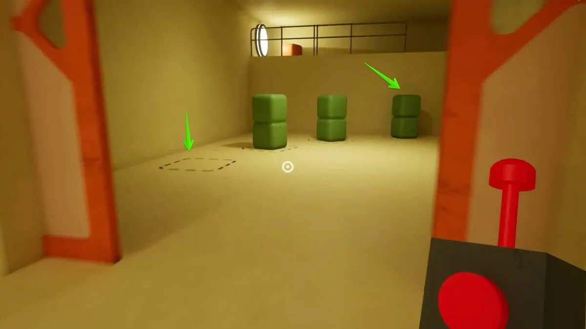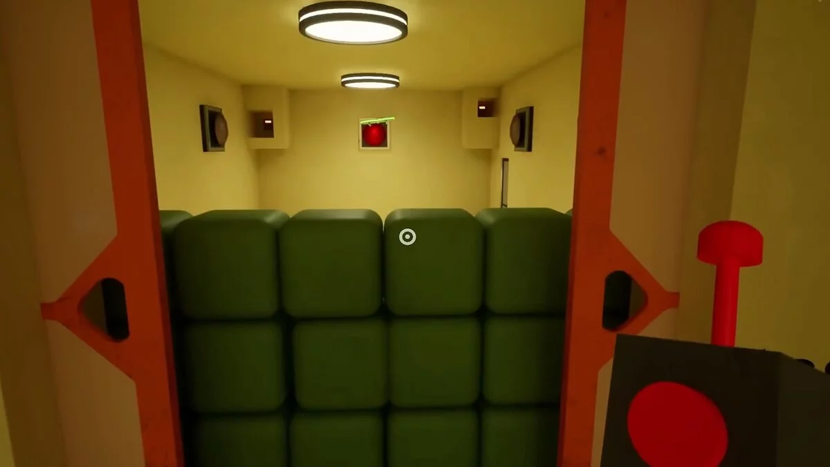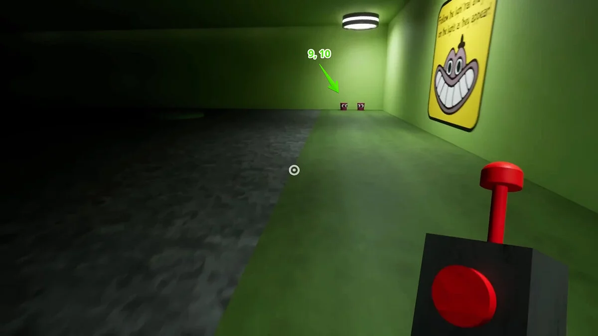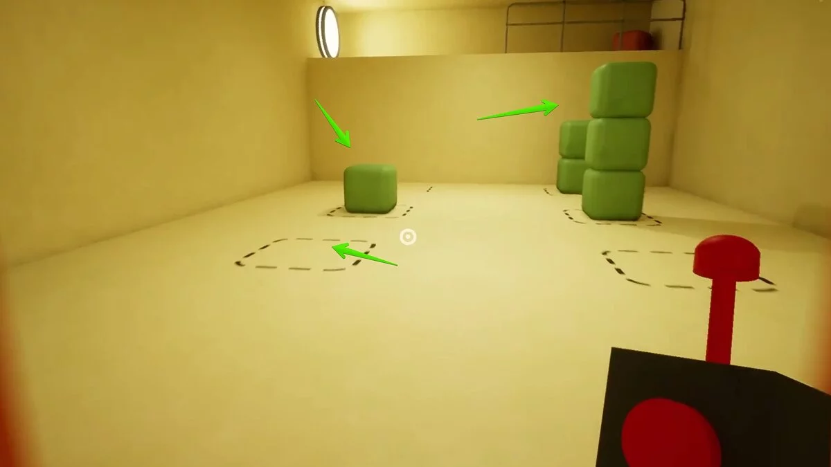 При взаимодействии со вторым выключателем кнопки станут двигаться быстрее. Повторите действие и нажмите на все. Последний третий выключатель активирует максимальную скорость. Мы рекомендуем прицелиться в один угол и спамить кнопкой атаки. Так вы намного быстрее сможете попасть по всем кнопкам. Также попробуйте менять угол, в который целитесь.
