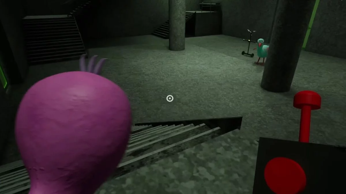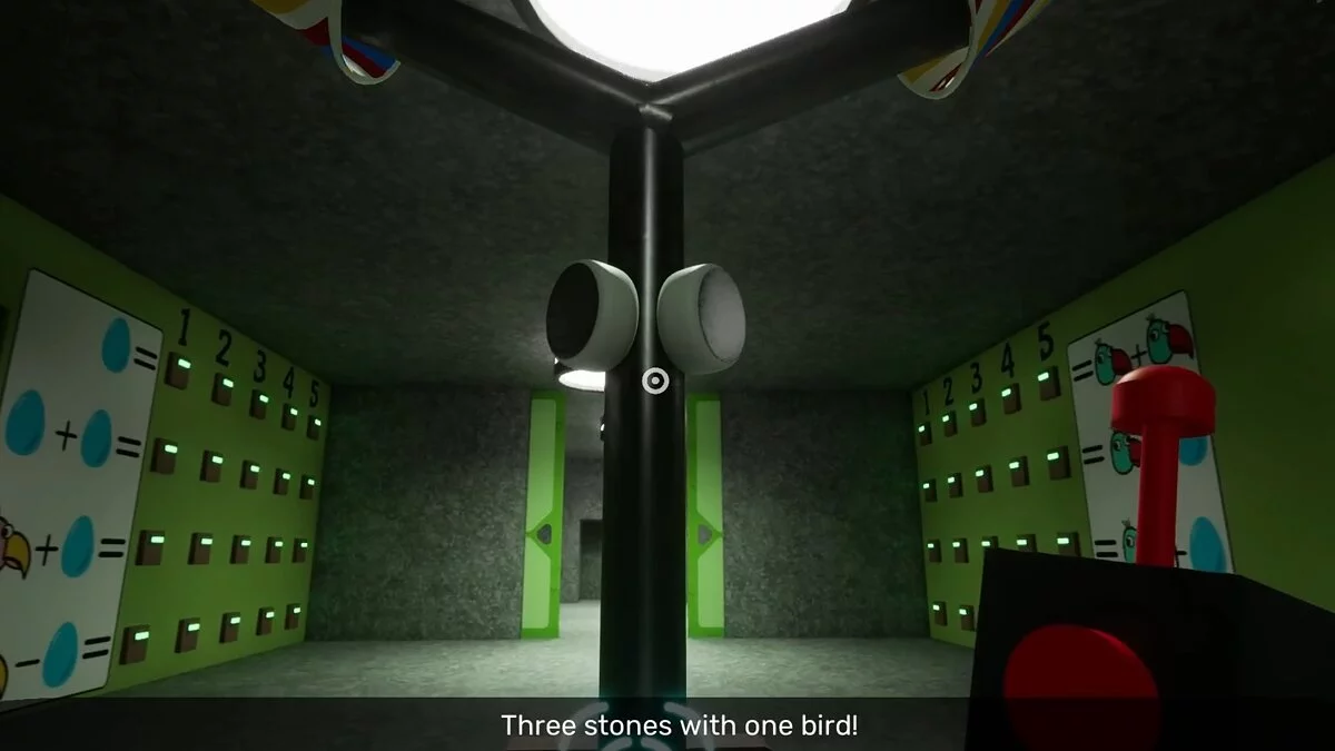 Вы окажетесь перед птицей, которую нужно испугать. Для этого используйте выключатель на спине робота. Предварительно в комнате можно отыскать записку на одной из лестниц.