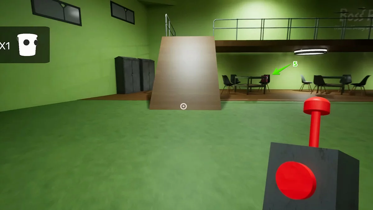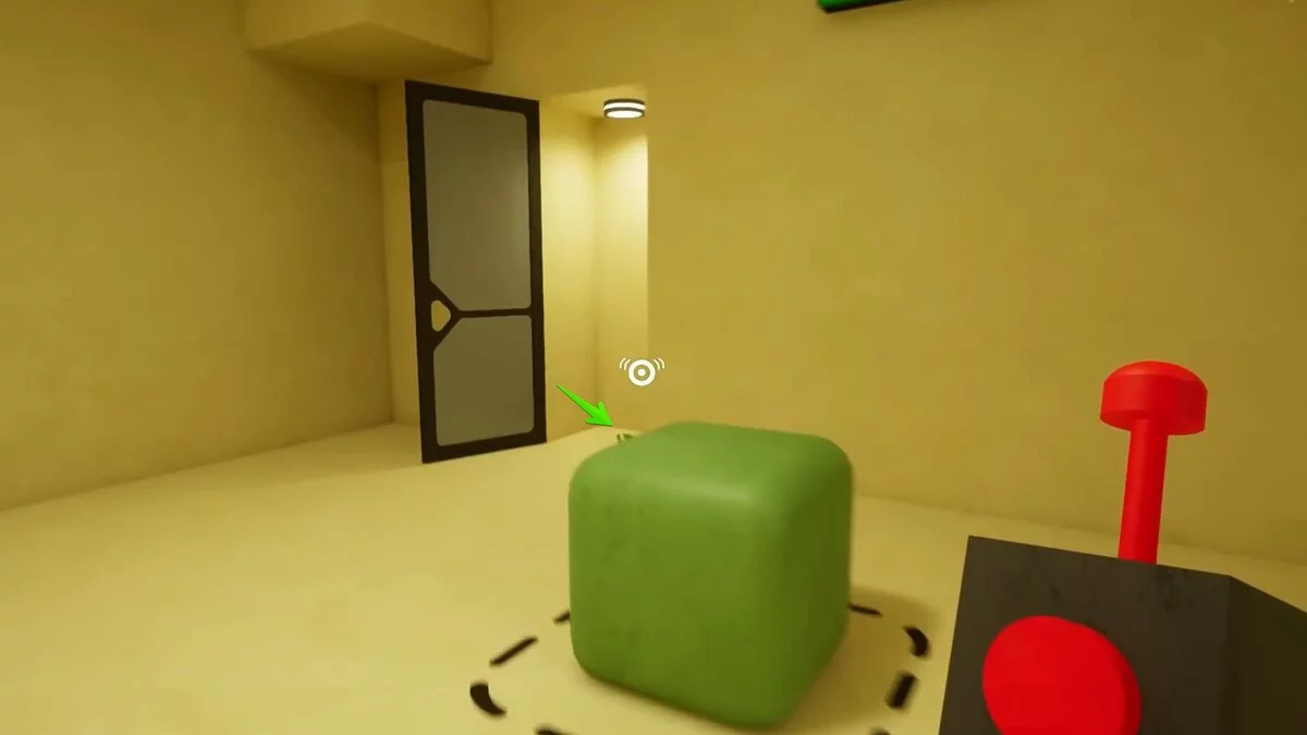 Снова соберите все кубы и садитесь за стол к монстру. Дрон должен остаться в правой комнате! Если вы вернете его в общую комнату, то босс заметит изменения. Когда он уйдёт, откройте правую дверь — там стала доступна жёлтая ключ-карта.