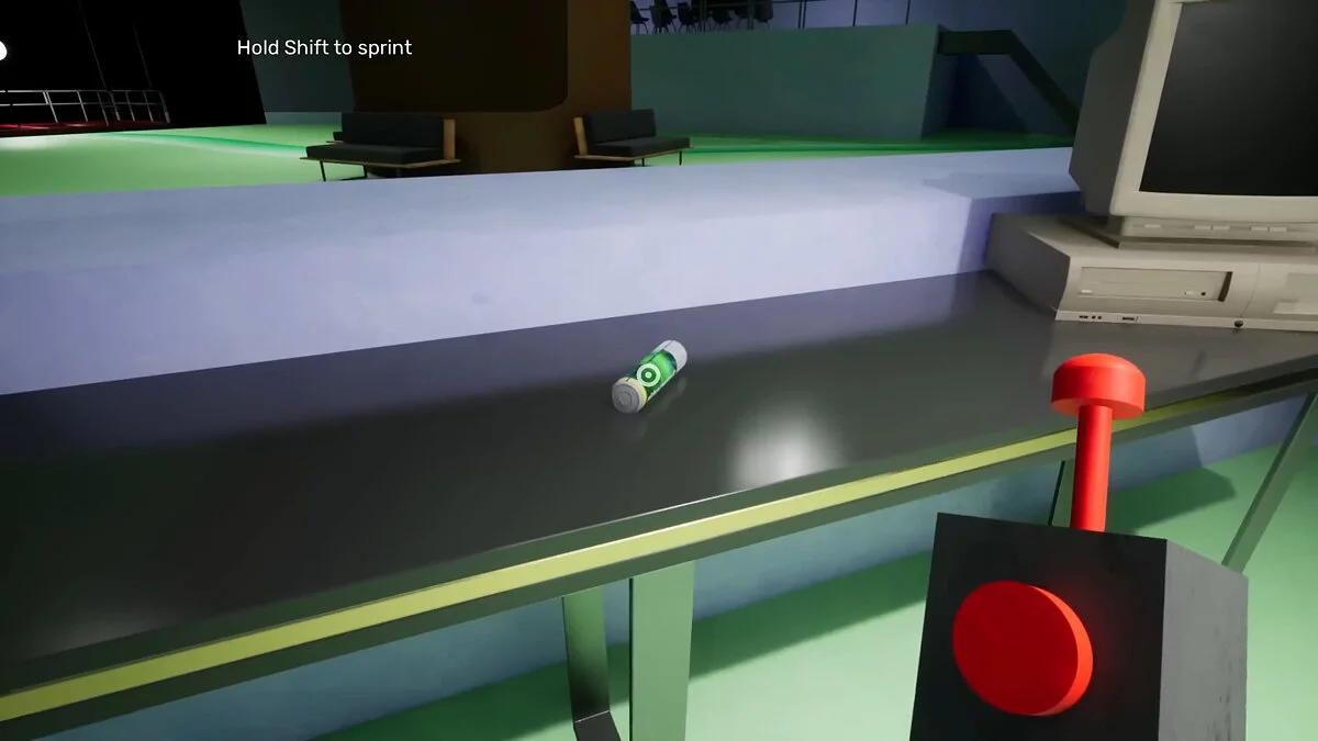 Выслушайте монолог и отыщите две батарейки, находящиеся в этой комнате. Первая лежит на столе рядом с компьютерами. Взять её можно будет только после того, как задание обновится.