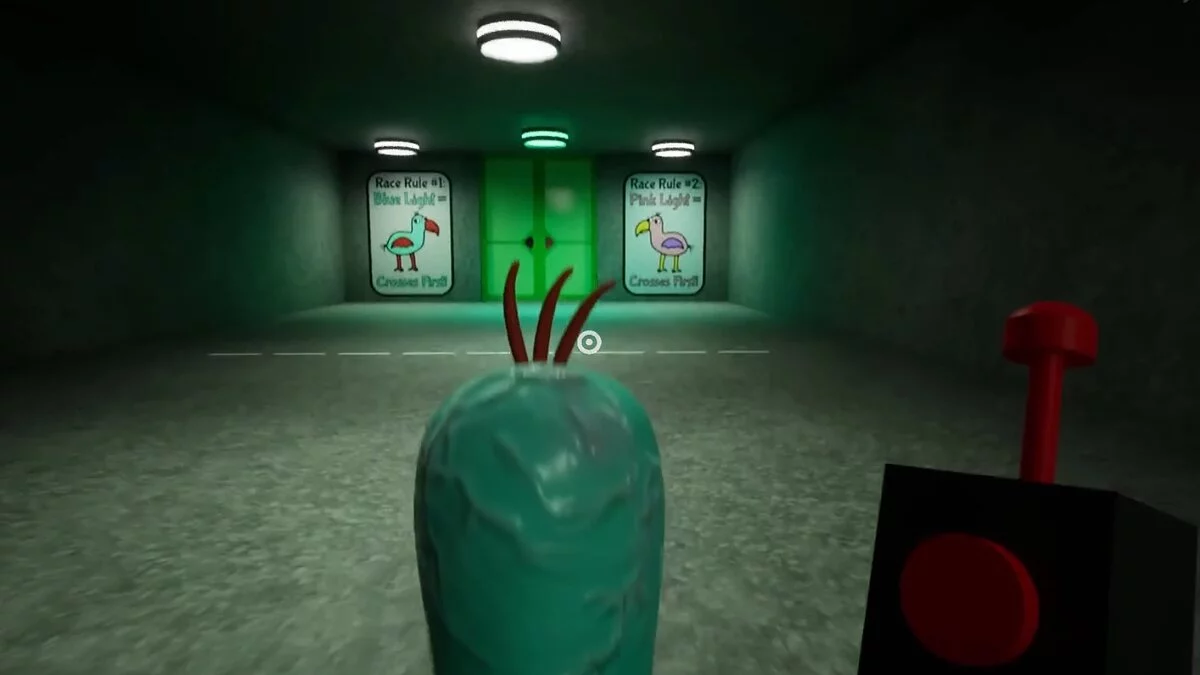 Нажмите на выключатель и вместе с птенцом пройдите к лифту. На этом игра будет окончена.