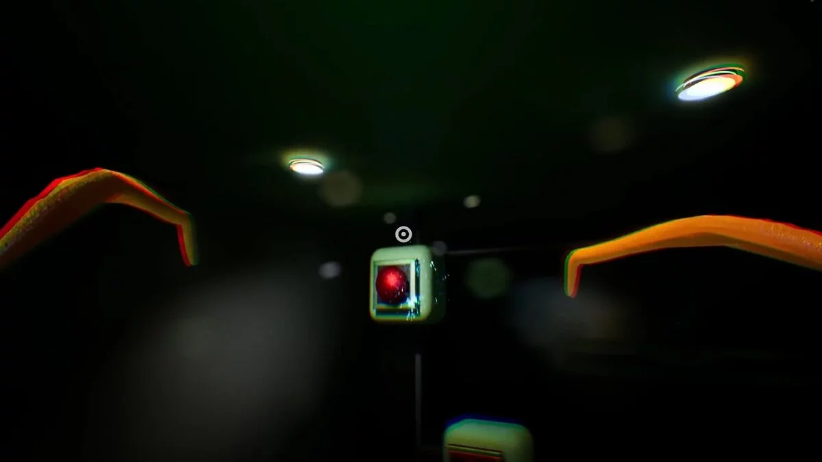 Теперь заберите щипцы и с их помощью переключайте цвета на лампочках в правой части комнаты. Все лампочки должны быть зелёного цвета. Также не забывайте использовать дрон, чтобы включать подсвеченные кнопки на стенах.