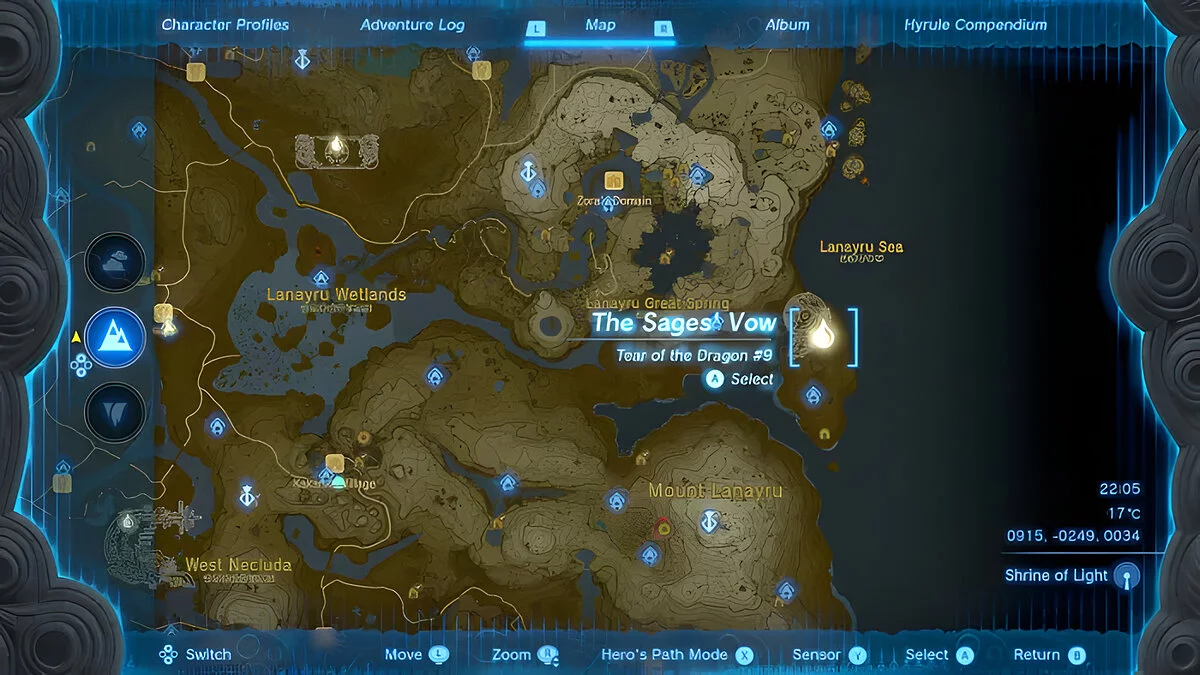 Следуйте к восточному побережью Хайрула, на юго-восток от владений Зоры. Так вы получите воспоминание «Клятва мудреца» (The Sage's Vow).
